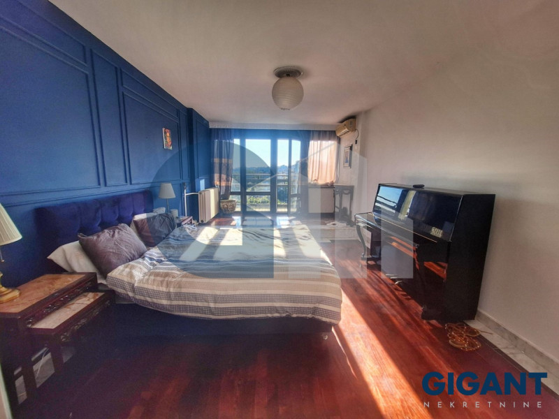 U ponudi kompletno namešten, prostran i svetao četvorosoban stan, površine 115m2+52m2 terase, smešten na poslednjem, 8. spratu stambene zgrade sa liftom (godina izgradnje 1983.). Stan je odmah useljiv, sa funkcionalnim rasporedom prostorija i obiljem prirodnog svetla zahvaljujući jugoistočnoj orijentaciji.