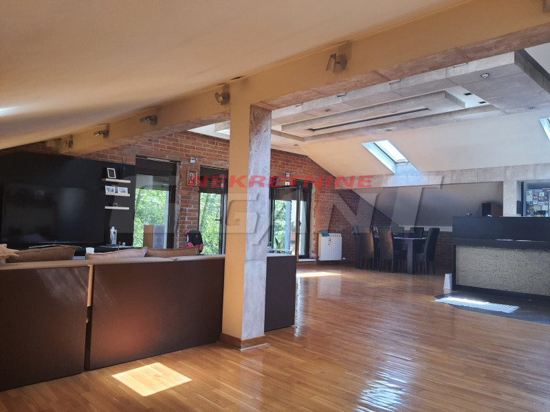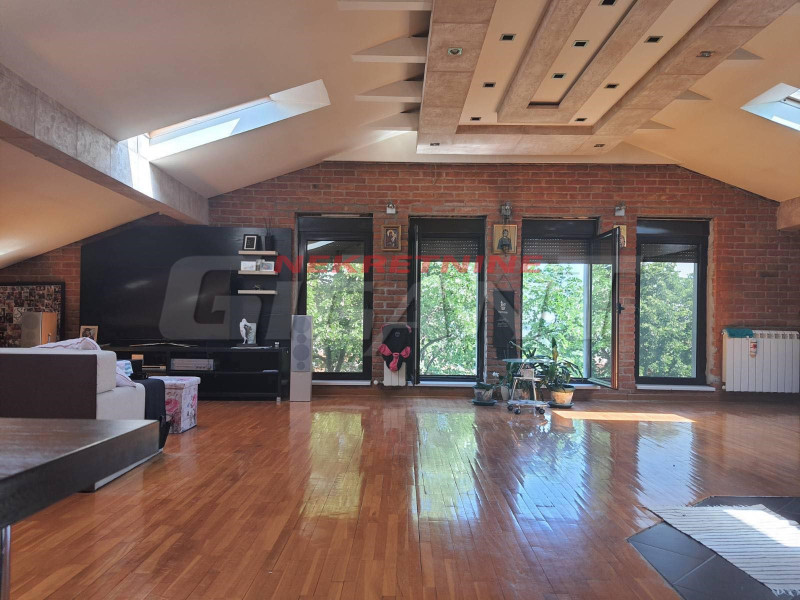 Ugovorna površina 175m2. Karaburma, prodaje se prelep petosoban stan na potkrovlju, nadograđen, uknjižen, renoviran i luksuzno namešten. Prostrana dnevna soba koja je povezana sa kuhinjom i trpezarijom sa puno svetlosti i opustajuće uklopljenim nameštajem i bojama. Nalazi se u zgradi koja je okružena zelenilom blizu škole, vrtića, trgovina, autobuskog stajališta sa direktnom vezom do centra grada. Postoji mogućnost ugradnje lifta. Agencijska provizija 2% 4/4 Patrisa Lumumbe -imamo slicne NEKRETNINE BEOGRAD