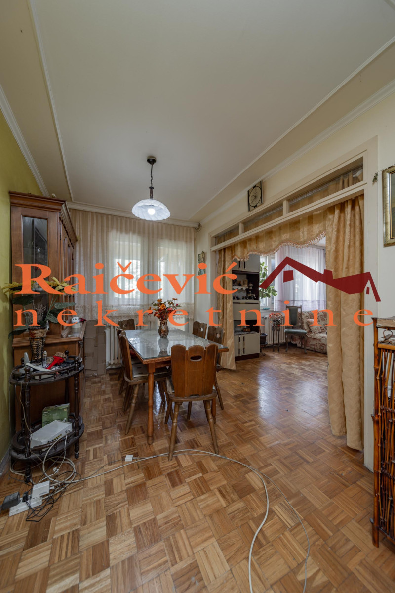 Prostorije: veliko predsoblje, dnevni boravak sa izlazom na zastakljenu terasu, kuhinja, trpezarija, gostinjski toilet i odvojen spavaci blok koji cine predsoblje, 2 spavace sobe, decija soba i kupatilo.