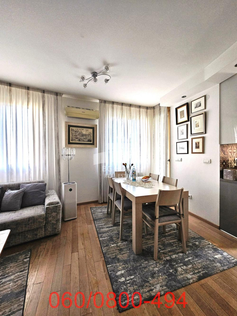 Poseduje klimu i šest ugradnih plakara, kao i alu-drvo stolariju sa komarnicima i hrastov parket