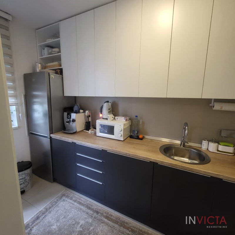 Trosoban noviji stan, potpuno opremljen, funkcionalnog rasporeda sa garažnim mestom u suterenu objekta, na odličnoj lokaciji, u neposrednoj blizini kako dunavskog keja-šetališta, tako i na svega 10-tak min laganog hoda od centra grada i pešačke zone, Riblje pijace. U blizini su i osnovna škola, vrtić, gimnazija. Dvostrane orijentacije, svetao i osunčan. Dve spavaće sobe sa vezom ka terasi, , prostorija za garderobu, poseban vešeraj sa mašinama za pranje veša,odvojena kuhinja i dnevni boravak povezan takođe sa drugom terasom. Stan je opremljen svom potrebnom belom tehnikom. Grejanje je centralno gradsko i plaća se po utrošku, samo u grejnoj sezoni. Useljiv je od 01.05. uz obavezan depozit. Izdaje se isključivo ozbiljnoj klijenteli na duži vremenski period. Posrednička provizija u visini od 50% od ugovorene mesečne zakupnine. Broj u Reg.posrednika 2107.