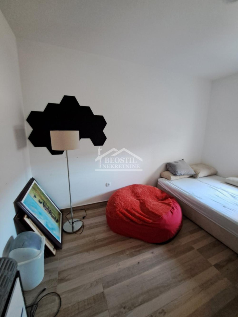Централна градска улица, нова зграда, са централним грејањем на гас и лифтом, припадајуће укњижено гаражно место, комфоран стан са великом улазном просторијом у којој је кухиња,трпезарија и дневна соба са изласком на терасу.