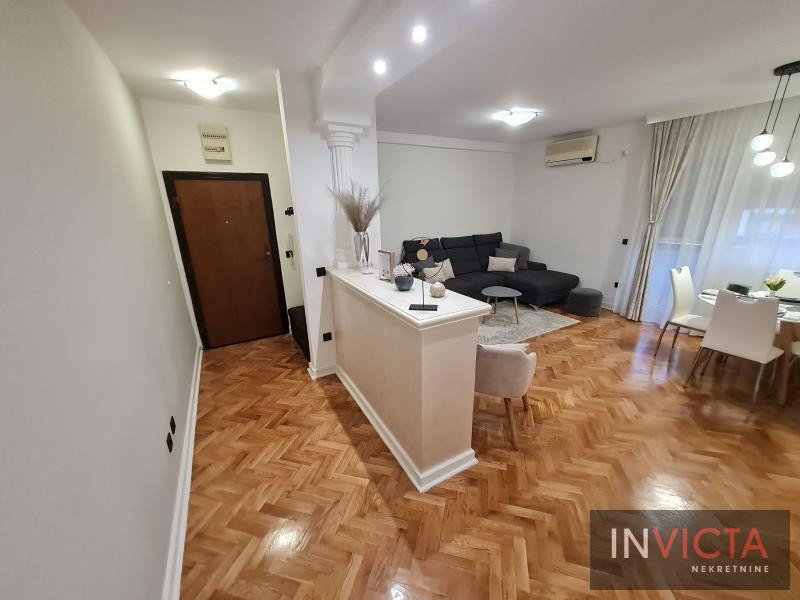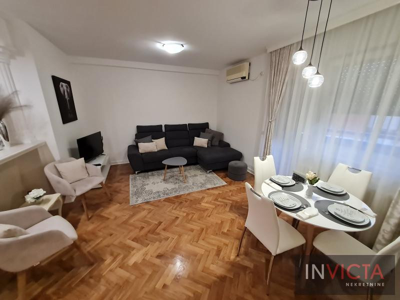 U potpunosti renoviran i kompletno opremljen odličan komforan dvosoban stan u strogom centru grada. Ulazno predsoblje, prostran i svetao dnevni boravak sa trpezarijskim delom i izlaskom na terasu. Odvojena kuhinja sa ostavom i takođe vezom sa terasom. Spavaća soba sa bračnim ležajem i kupatilo. Račun informatike cca 10.000 din. SBB internet sa ktv je 4.200 din. Stan je useljiv od 01.04. Isključivo za ozbiljne zakupce. Isključeni pušači i kućni ljubimci. Obavezan depozit. Br. u Reg.posredn.475.