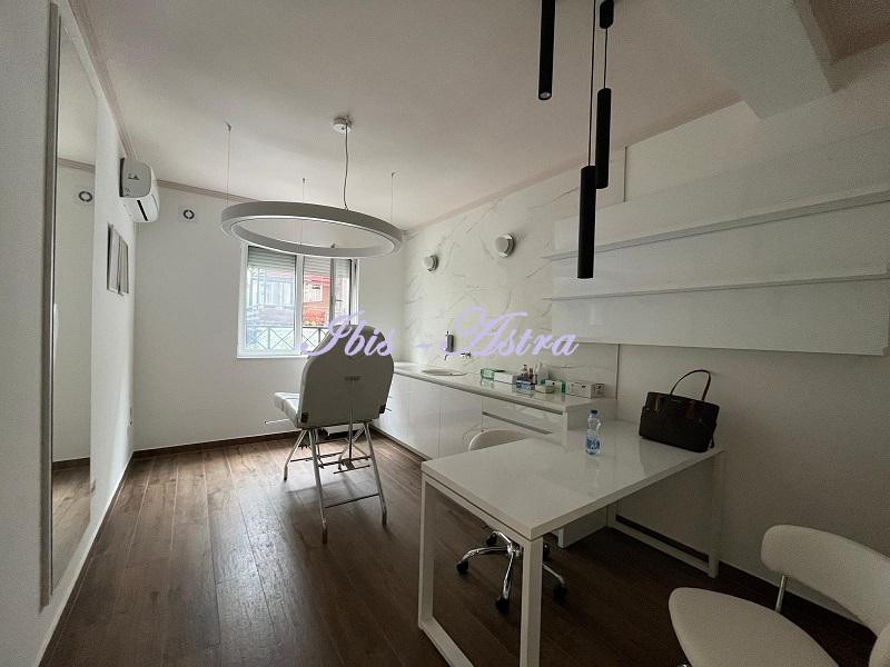 U novijoj stambeno - poslovnoj zgradi za izdavanje poslovni prostor opremljen kao ordinacija. Prostor se sastoji od prijemnog dela, 2 kancelarije, 2 mokra čvora. Grejanje je centralno - podno. Prostor je pod video nadzorom. Kompletno je namešten za ordinaciju ili kozmetički studio. Postoji mogužnost da se izdaje i kao prazan.