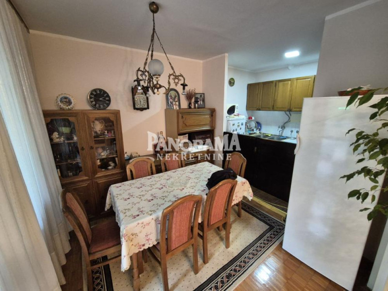 Stan je uknjižen na 70m2,mereno ima 74m2 i sastoji se od : prostranog ulaznog predsoblja,kuhinje,otvorenog dnevno trpezarijskog dela sa lođom,