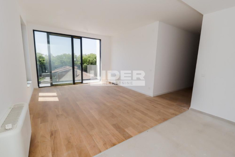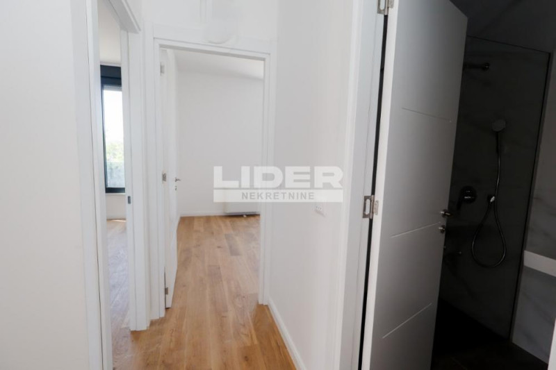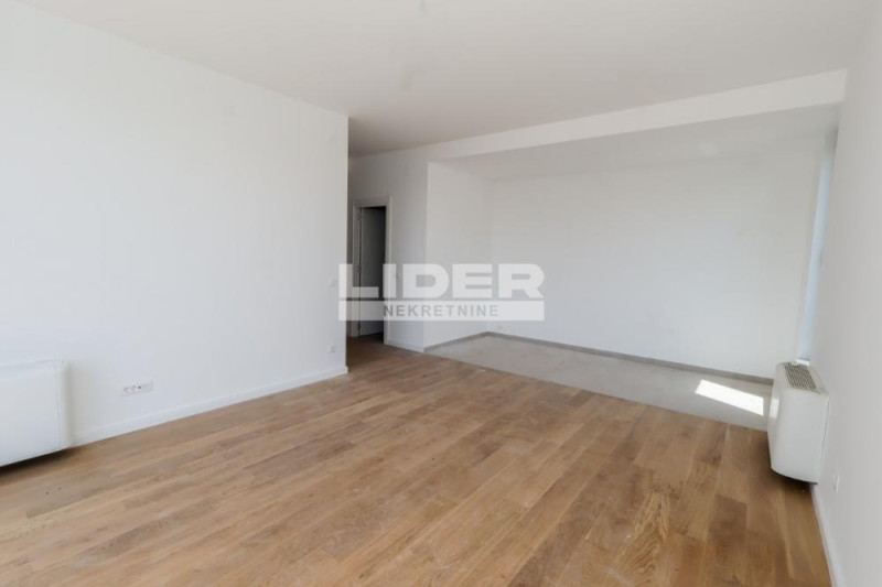 Prostorije: dnevni boravak sa kuhinjom i trpezarijom, dve spavaće sobe, dva kupatila, terasa