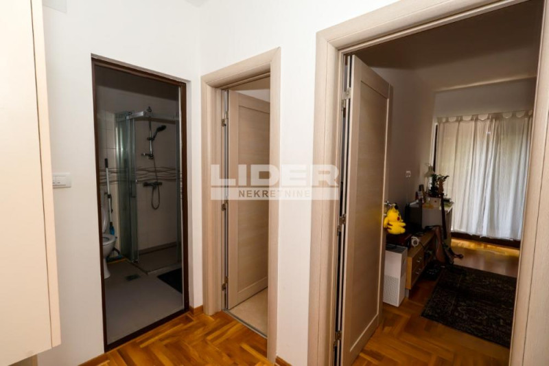 Prostorije: Hodnik sa plakarom iz koga se izlazi u sve prostorije. Kuhinja sa trpezarijom, dnevni boravak, spavaća soba, kupatilo. Sve prostorije imaju prozore, svetao, sunčan stan.Ači stlarija, paret, eg na struju.