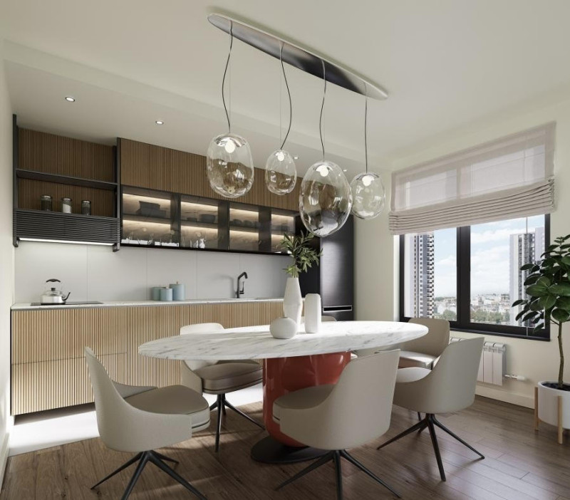 zgrade, sa pogledom prema Kuli Beograd. Sastoji se od dnevne sobe i kuhinje i