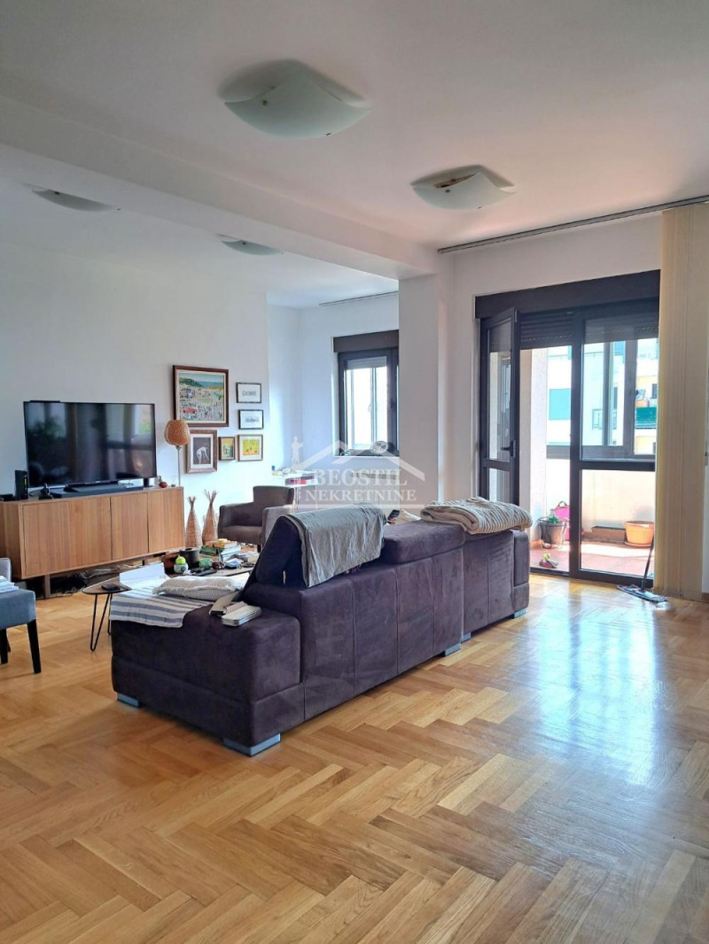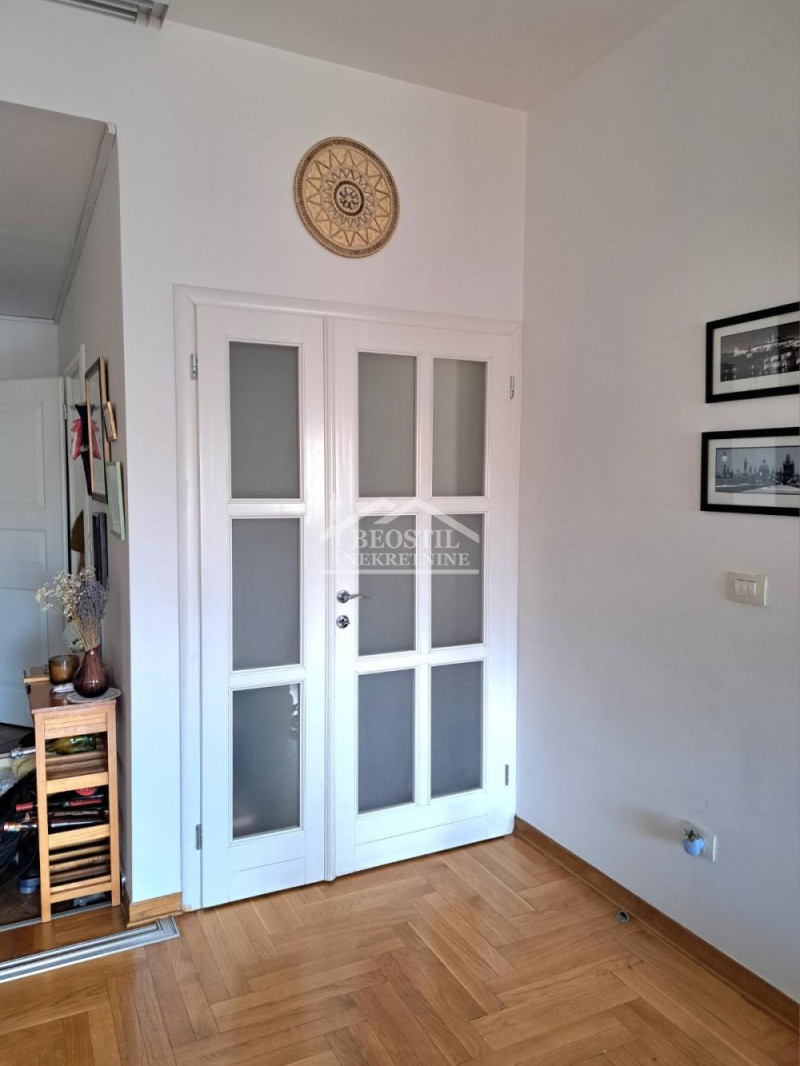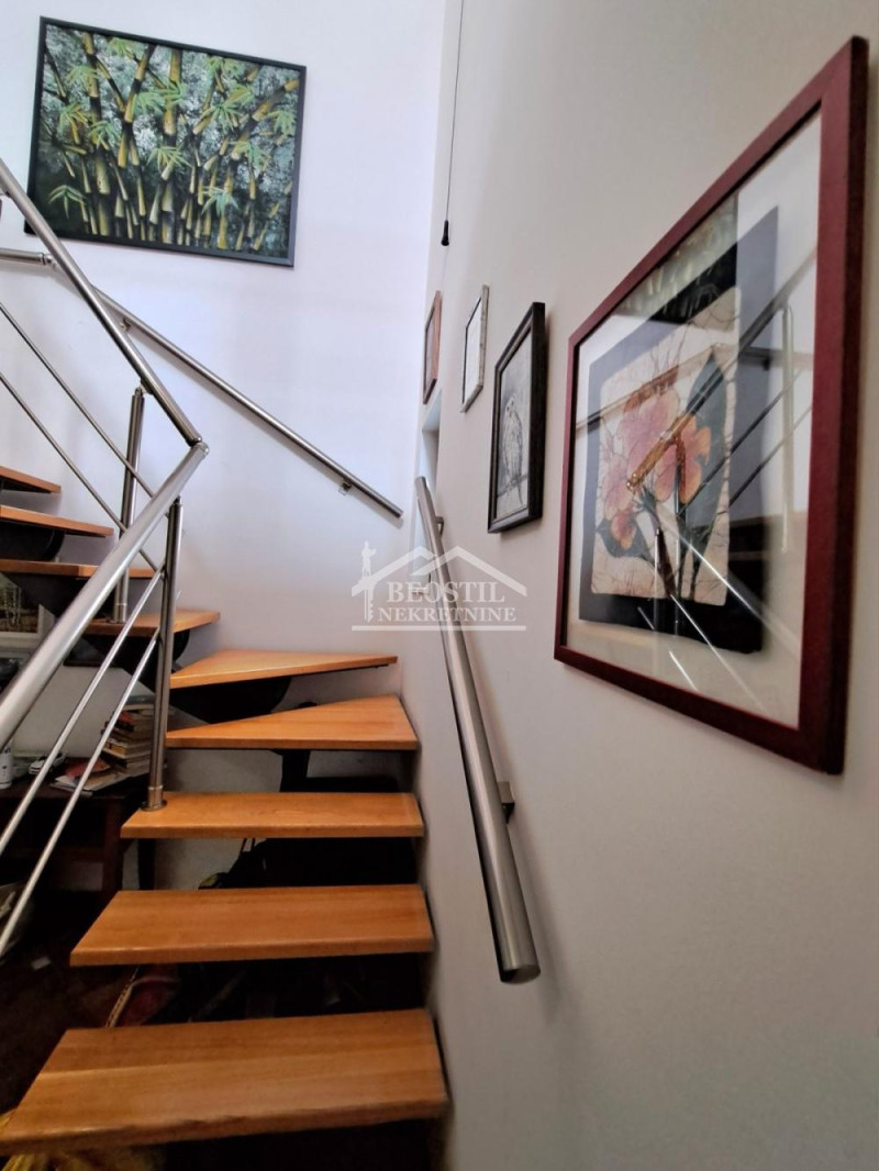 Moderan četvorosoban dupleks sa garažnim mestom i garažnom ostavom u veoma kvalitetnoj zgradi (aluminijumska stolarija, hrastov parket u svim sobama, visina do plafona 3m, bešumni lift).