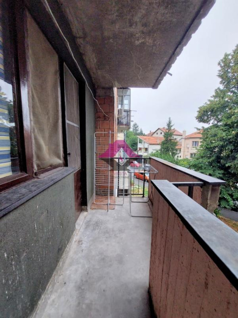 Dvosoban funkcionalan stan sa prostranom terasom, dvostrano orjentisan, u stambenoj zgradi kvalitetne stare gradnje, u mirnom kraju naselja Karaburma, na obodu Zvezdarske šume. U blizini je stanica gradskog prevoza autobusa 27 i 27e koji saobraćaju do centra grada. Stan se nalazi na visokom prizemlju visine 1.sprata, ispod su stanovi u prizemlju. Ima i pripadajuću podrumsku prostoriju. Dnevna soba je povezana sa kuhinjom i ima izlaz na prostranu terasu koja gleda na ulicu. Spavaća soba je orjentisana na dvorišnu stranu, mirno sa dosta zelenila. Stan je u izvornom stanju, budući vlasnik ga može preurediti prema svojim potrebama. Ispred zgrade ima dovoljno mesta za parkiranje i parking je besplatan.