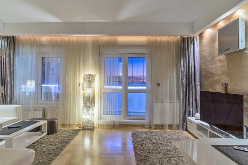 zastakljenu terasu idealnu za uzivanje sa panoramskim pogled na grad. Dodatno,