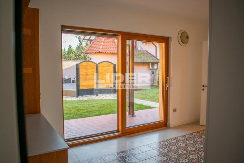 Kuća se sastoji od dnevne sobe, tri spavaće sobe, kuhinja i trpezarija, kupatilo, toalet, garaža, pomoćne prostorije, dvorište, letnja kuhinja i špajz. Podno grejanje agencijska provizija 50%