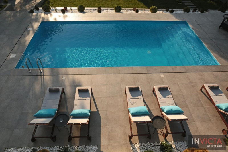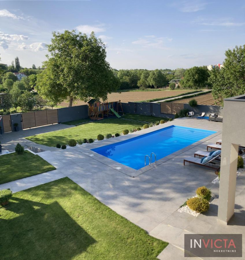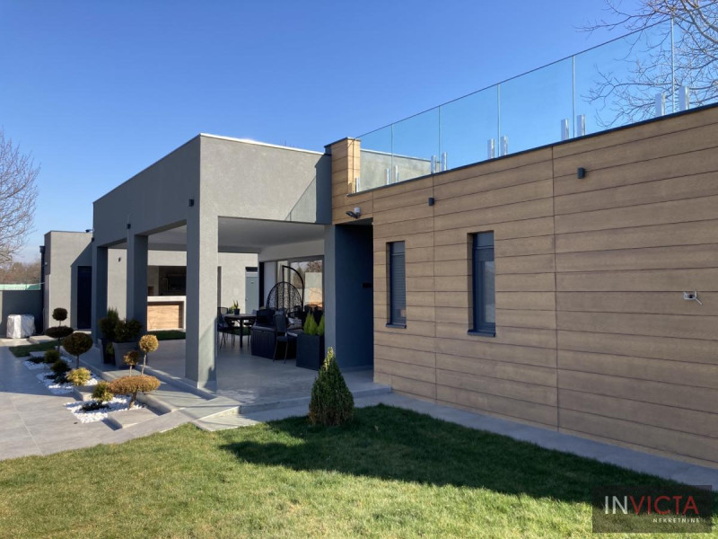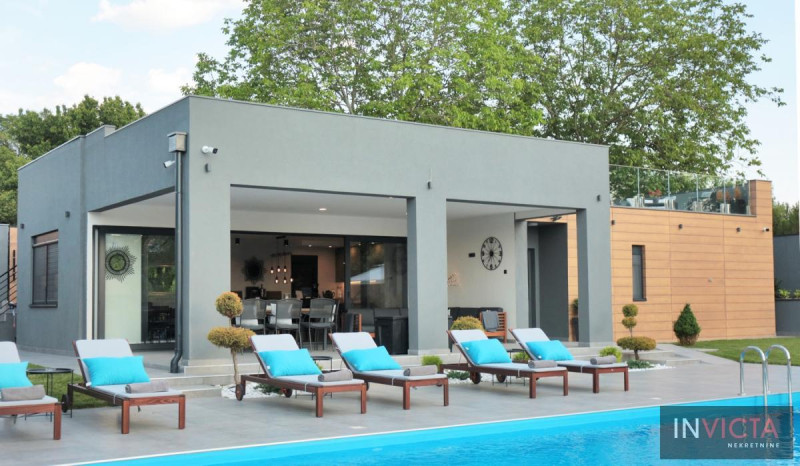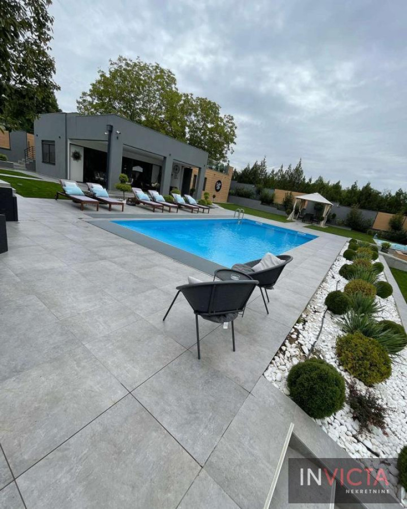 Na samo 10-tak min. lagane vožnje od centra N.Sada. u prelepom prirodnom okruženju na potezu između Sr.Kamenice i Petrovaradin, nova, luksuzna kuća sa pratećim sadržajem koji omogućava aktivan i ispunjen život u prirodi, nadomak grada.. Na prelep uređenoj i elegantno ozelenjenoj parceli površine 1100m2 m, nalazi se impozantan bazen, dečije igralište, otvoreno ložište za druženje uz mogućnost pripreme -pečenja hrane , odličnoi opremljen spoljni bar sa roštiljen i pećnicom za pečenje celih komada prasetine, jagnjetine, spoljni toalet, ostave. U samoj, moderno koncipiranoj kući se nalazi veći dnevni botavak sa trpezarijskim delom, povezan sa kuhinjom te velikom nadkrivenom terasom. U spavaćem delu su tri spavaće sobe sa kupatilom. Na krovu kuće-prelepa krovna terasa za uživanje sa pogledom na obronke Fruške gore. Parcela je u potpunosti ograđena, sa dovoljno parking mesta. Mali režijski troškovi, grejanje je podno, na struju.