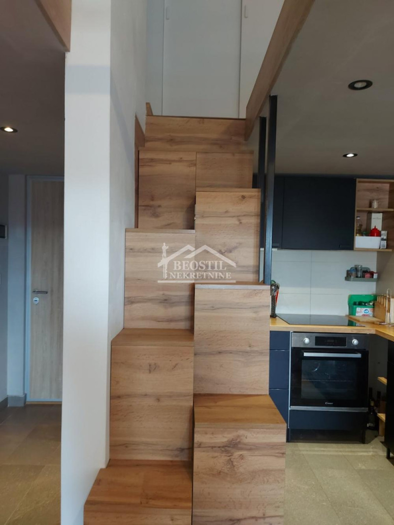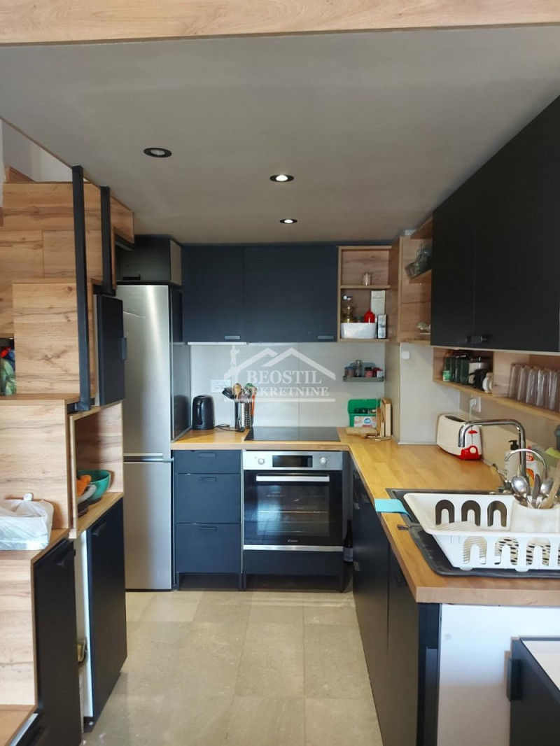 39m2 uknjiženih, jako funkcionalno organizovan prostor, opremljen nameštajem izrađenim po meri po arhitektonskom projektu (dosta ugradnih plakara, polica, čitav nameštaj ručno rađen).