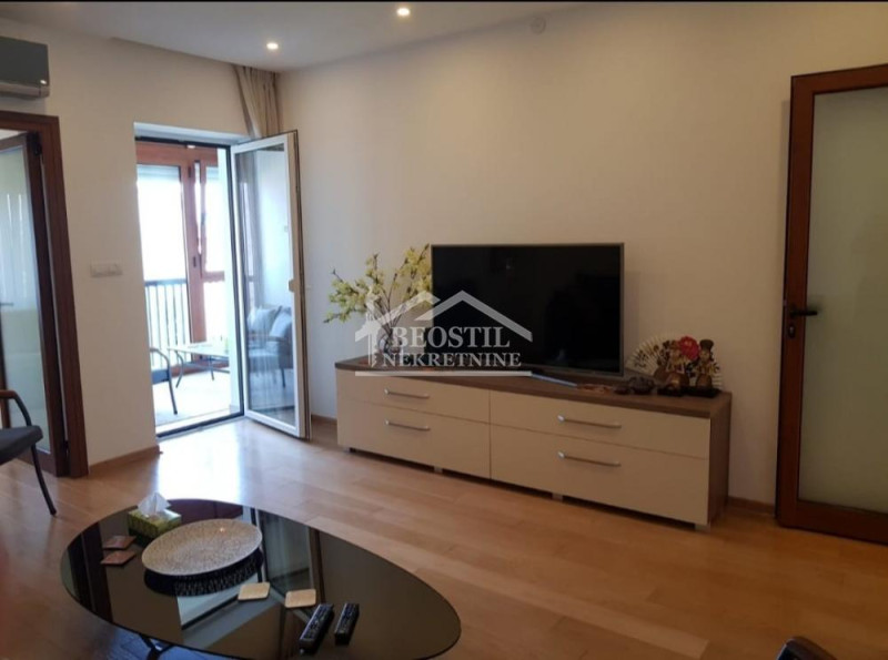 Stan od 69 m2 (bez terase i balkona uknjižen na 53 m2), sa zastakljenom terasom sa roletnom na elektro pogon, eloksiranom stolarijom u boji drveta, sa pogledom na uređeno dvorište i Beograd na vodi. Sa balkona se pruža pogled na zgrade od posebnog kulturno-istorijskog značaja za državu sa 24h obezbeđenjem.