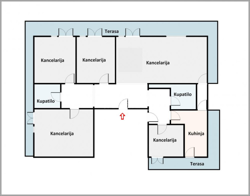 Struktura: 5 kancelarija, 2 kupatila, kuhinja, terasa, komotan hodnik i degažman.