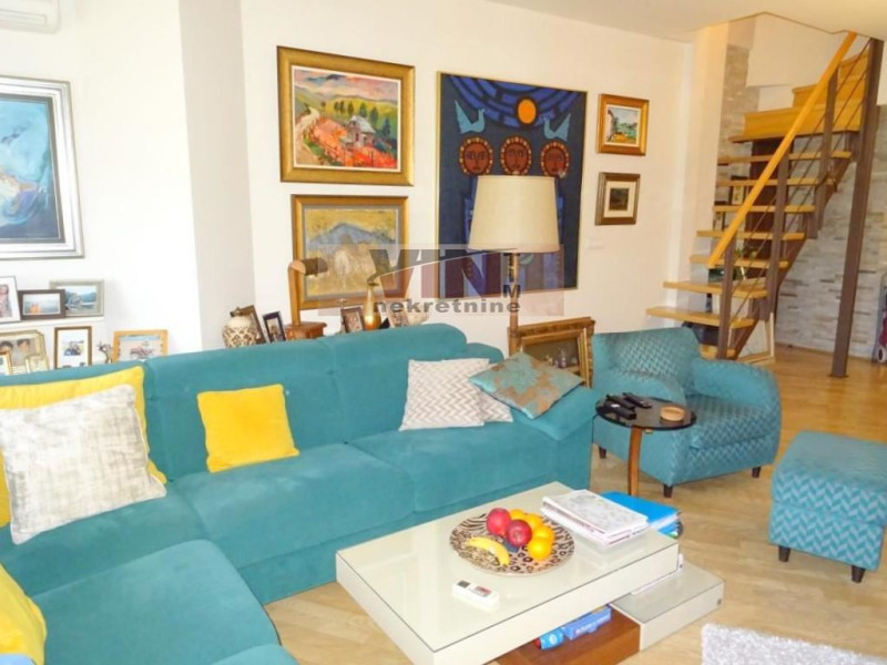 U kvalitetno gradenoj zgradi, novijeg datuma, nalazi se ovaj vrlo zanimljiv dupleks.Ambijetalno odiše skladnim dnevnim boravkom, u cijem je sastavu i trpezarija, kao i kuhinja. U tom delu, koji se nalazi na prvoj etaži, pored te dve sobe i kuhinje, je i prvi mokri cvor, kao i izuzetno mocna terasa. Na drugom nivo su spavace sobe i kupatilo, kao i zahvalni garderober u koji može da se ude i organizuje sva odeca, i ostale neophodne kucne stvari koje se odlažu u takvim prostorima. Sve je u stanu vrlo kvalitetno napravljeno i odradeno korišcenjem prvoklasnih materijala. Sama zgrada nema veliki broj stanara i ima svoj sopstveni park opremljenim sa rekvizitima za decu. Stan je uknjižen na 84m2, mereno ima 94m2. Važno je napomenuti da je uz kupovinu ovog stana moguce kupiti 2-3 garažna mesta u samoj zgradi.