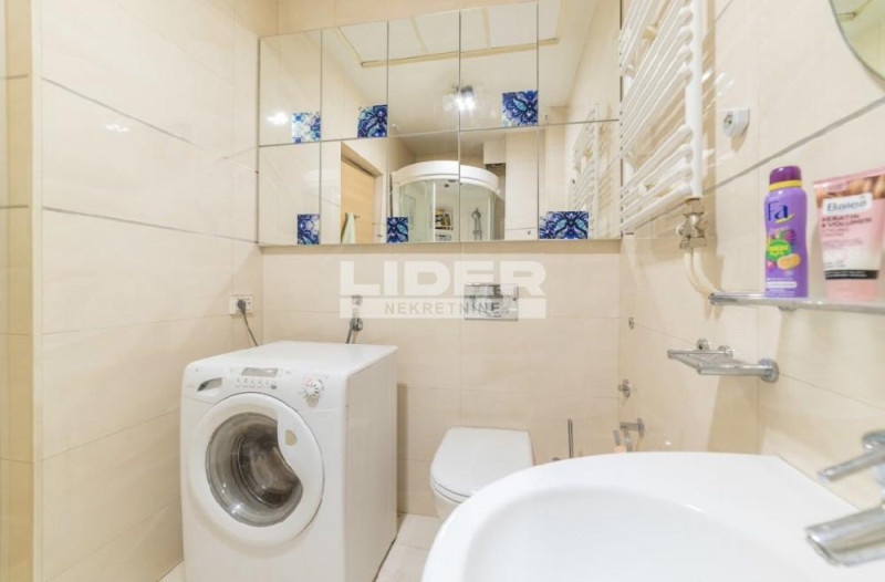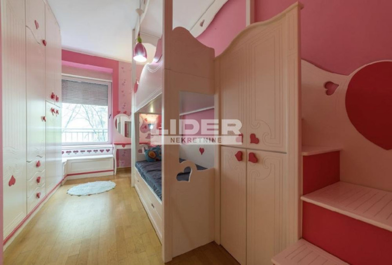 Stan u odličnoj zgradi, namešten sa garažnim mestom. U okviru zgrade je bazen, sauna i dvorište, svi sadržaji su dostupni budućem zakupcu. Mesečna renta je 1300e, plus depozit. Namešten, ima cg i podno grejanje u kupatilu, klima. PROSTORIJE: hodnik, veliki dnevni boravak sa trpezarijom, kuhinja, terasa, tri spavaće sobe, degažman i dva kupatila. Za preporuku. agencijska provizija 50%