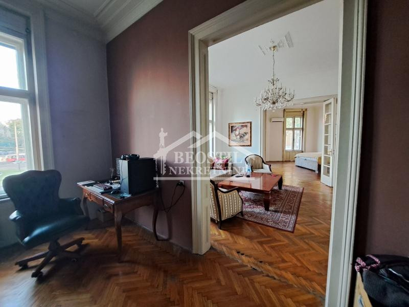 Prodaje se salonski stan površine 171m2 na prvom spratu stambeno-poslovne zgrade sa pogledom na Trg Slavija.