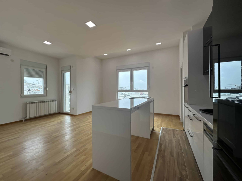 FOR RENT – SPACIOUS THREE-BEDROOM APARTMENT IN A NEW BUILDING (76 m²) Available for rent: a spacious three-room apartment of 76 m² located in a newly built building.The apartment features two bedrooms, a large living room in a modern open-space concept connected to the kitchen and dining area, and access to a loggia, providing comfort and a pleasant living environment. The apartment is brand new, equipped with a modern kitchen and appliances, with an option to fully furnish it according to the tenant’s needs.Inverter air conditioners provide both heating and cooling, ensuring low monthly utility costs. A parking space is also available for rent.Excellent public transport connections (77, 79, 28, 40) provide easy access to all parts of the city.