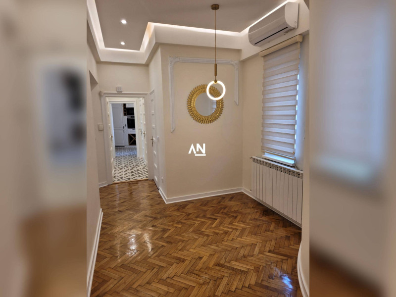 U samom srcu centra grada, u prestižnoj četvrti, na pešačkoj udaljenosti od svih bitnih znamenosti i infrastrukturnih objekata, izdaje se renoviran dvoiposoban stan. Stan je na četvrtom spratu od šest u salonskoj zgradi sa liftom. Stan se izdaje prazan pa je pogodan kako za stanovanje tako i kao poslovni prostor. Poseduje odvojenu kuhinju i ostavu (veš mašina i mašina za sušenje veša). Stan je osunčan i svetao, dvostrano orjentisan, istok – zapad, svaka prostorija ima prirodnu ventilaciju, 2 klime. Stan je useljiv od novembra 2025. Mesečno plaćanje+depozit. Agencijska provizija se plaća u skladu sa opštim uslovima poslovanja. //Agent:069-242-5330//