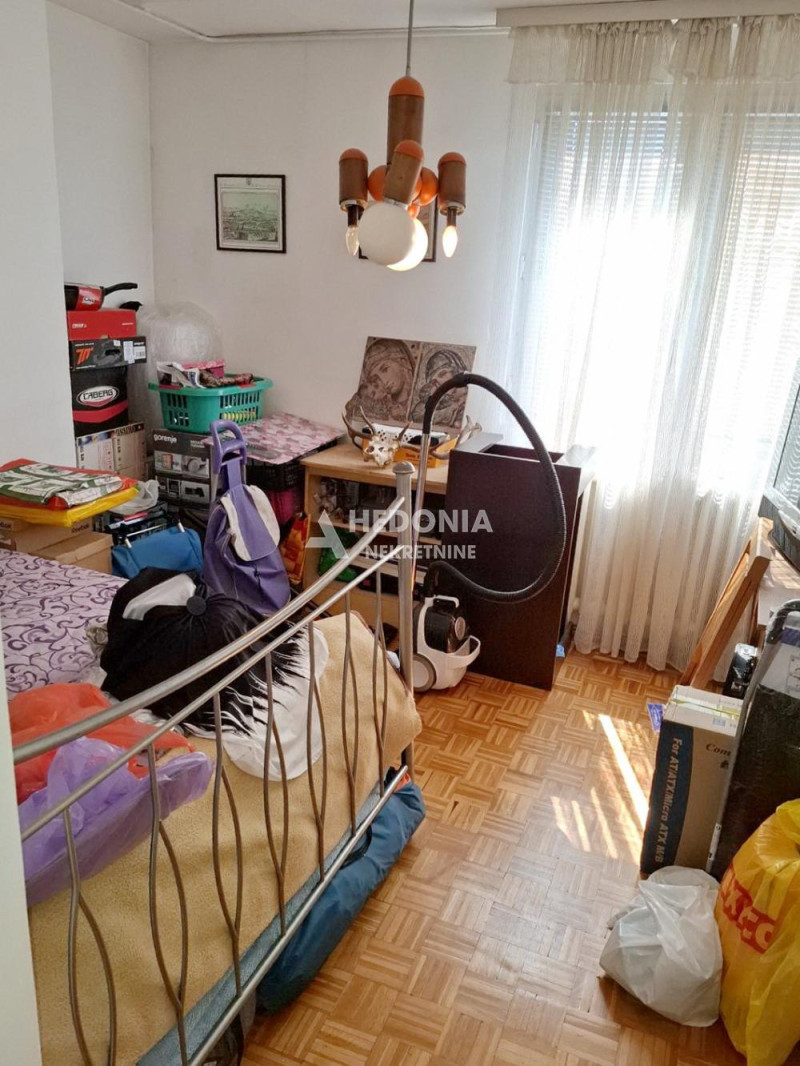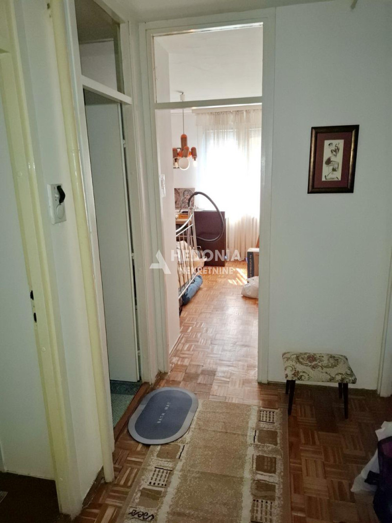 U parkovskom okruženju bloka 62, u ulici Jurija Gagarina, nalazi se ovaj trosoban stan. Smešten je na četrnaestom spratu uredne i održavane zgrade. Infrastruktura je kompletna, u neposrednoj blizini se nalaze svi neophodni sadržaji za udobno stanovanje. Odlično je povezan sa svim delovima grada, autobuskim i tramvajskim linijama prevoza. Stan je u izvornom stanju, trostrano orijentisan (jug-zapad-sever) i lako adaptibilan u troiposoban. Sastoji se iz ulaznog hodnika, kuhinje, trpezarije, prostranog dnevnog boravka sa bočnim prozorom, dve spavaće sobe, kupatila, toaleta i tri lođe.