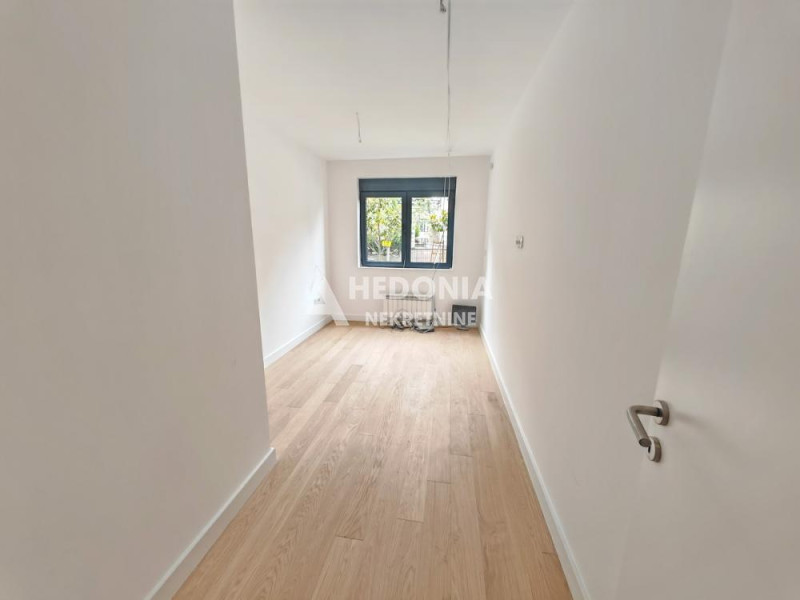 Nadomak centra Beograda, u najlepšem delu opštine Voždovac, između ulica Vojvode Stepe i Bulevara Oslobođenja, nalazi se CHARM Residences. Modernog eksterijera, ova zgrada je projektovana tako da sem estetskog ugođaja svojim stanarima pruži najnovije trendove i standarde arhitekture. CHARM ima 7 spratova, 27 stanova i 30 parking mesta. Strukturno su zastupljeni jednosobni, dvosobni, trosobni i četvorosobni stanovi. Svi su otvorenog tipa, sa objedinjenim dnevnim boravkom, trpezarijom i kuhinjom. Vrhunski materijali su samo jedna od stvari koja će vam u ovoj zgradi pružiti kvalitetan način života. Fasada je kombinacija prirodnog kamena i fasadnog maltera. Na prednjoj fasadi je dekorativna rasveta, a u dvorištu iza objekta je diskretna rasveta na ogradnom zidu sa upravljanjem iz stanova. Ograde na terasama su staklene. Video nadzorom su pokriveni ulaz u zgradu, ulazni hol, svi nivoi garaže, kao i auto lift. Ulazna vrata su Bosal, spolja tamna furnirana, unutra bela, visine 250cm. Sobna vrata su bela MDF. Stolarija je aluminijumska sa termopan staklima, aluminijumskim roletnama sa elektropodizačima i komarnicima. Parket je hrastov dvoslojni, a keramika je I klase. U kupatilima su tuš kabine, konzolni umivaonici i wc šolje, horizontalni bojler. Grejanje je centralno, a u kupatilima sem sušača postoji i podno električno grejanje. Svi stanovi su klimatizovani. Takođe su pokriveni i sistemom "Pametna kuća", grejanje, klimatizacija i deo rasvete su na daljinsko upravljanje. Stan je po strukturi trosoban, nalazi se na prizemlju i okrenut je ka ulici i kao takav je idealan za poslovni prostor. Sastoji se iz ulaznog hodnika, dnevnog boravka sa kuhinjom i trpezarijom, dve spavaće sobe, dva kupatila i terase sa izlazom na malu ograđenu bašticu. Uz stan ide ostava od 3,14 m2 a moguće je kupiti i garažno mesto po ceni od 30.000 EUR sa PDV-om.