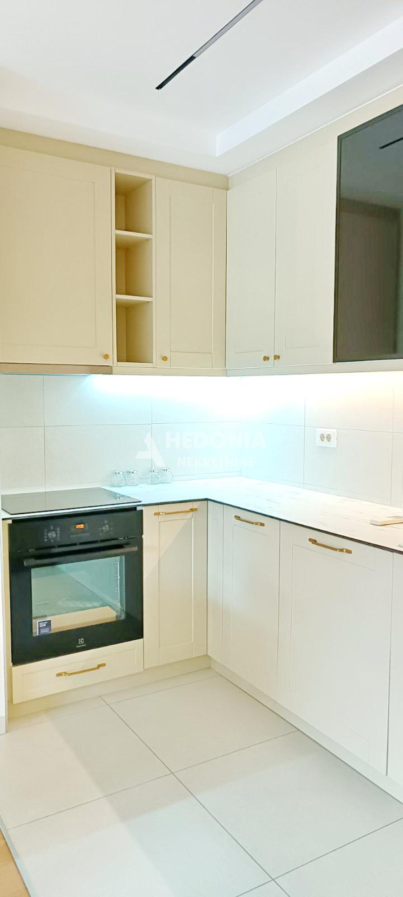 Naselje A blok predstavlja jedinstvenu arhitektonsko-ambijentalnu celinu, koja predstavlja spoj savremene umetnosti i pejzažnog uređenja. Stanari i posetioci ovog kompleksa osećaju se zaštićeno i sigurno jer u kompleksu postoji 24h obezbeđenje. Kompleks se dnevno održava - zelenilo, higijena, sve odiše luksuzom. Izuzetna infrastruktura, povezanost sa svim delovima grada autobuskim i tramvajskim linijama. Stan je smešten na drugom spratu zgrade, sa liftom u III fazi gradnje. Po strukturi je dvosoban, nov, luksuzan, kompletno opremljen i namešten za izdavanje. Sastoji se iz dnevno-trpezarijskog prostora, sa ugradnom kuhinjom, spavaće sobe, prostranog kupatila i prelepe terase, sa pogledom na zelenilo. Stan je pozicioniran ka unutrašnjosti bloka, što omogućava dodatni mir i izolovanost od buke. Obavezan depozit prema zakupodavcu u visini rente + 50% provizija agencije za usluge posredovanja.