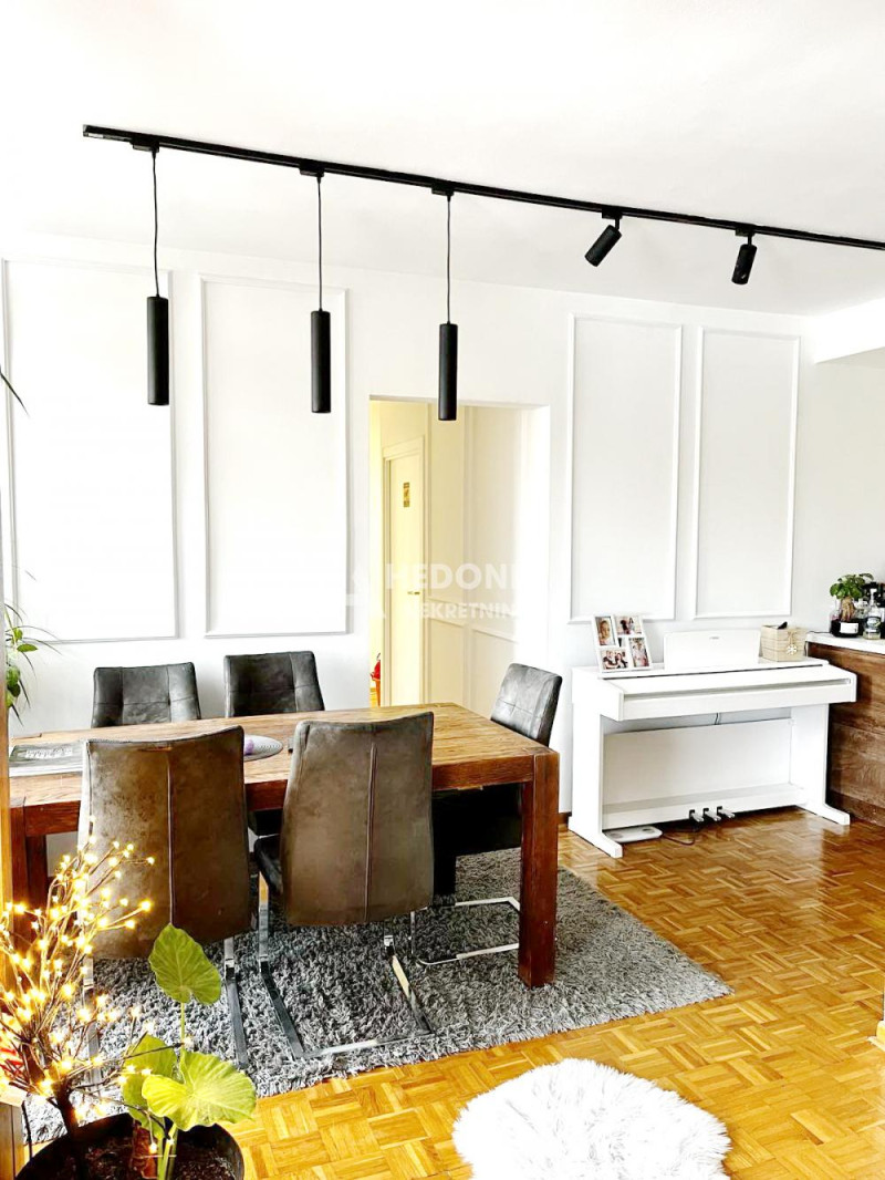 U Mirijevu, u popularnoj ulici Matice srpske, nalazi se ovaj troiposoban stan. Infrastruktura je kompletna, u blizini se nalazi škola, vrtić, pijaca, marketi kao i svi ostali neophodni sadržaji za udoban i lagodan život. Saobraćajna povezanost sa ostalim delovima grada je odlična. Zgrada se nalazi u najlepšem delu Mirijeva, okružena sa dosta zelenila, uredna je i lepo održavana sa liftom. Stan je kompletno sređen, izuzetno funkcionalan, svetao, izvorno trosoban, adaptiran u troiposoban. Nameštaj je po meri u svim sobama. Sastoji se iz dnevno-trpezarijskog dela sa izlaskom na terasu, odvojene kuhinje, tri spavaće sobe i kupatila.