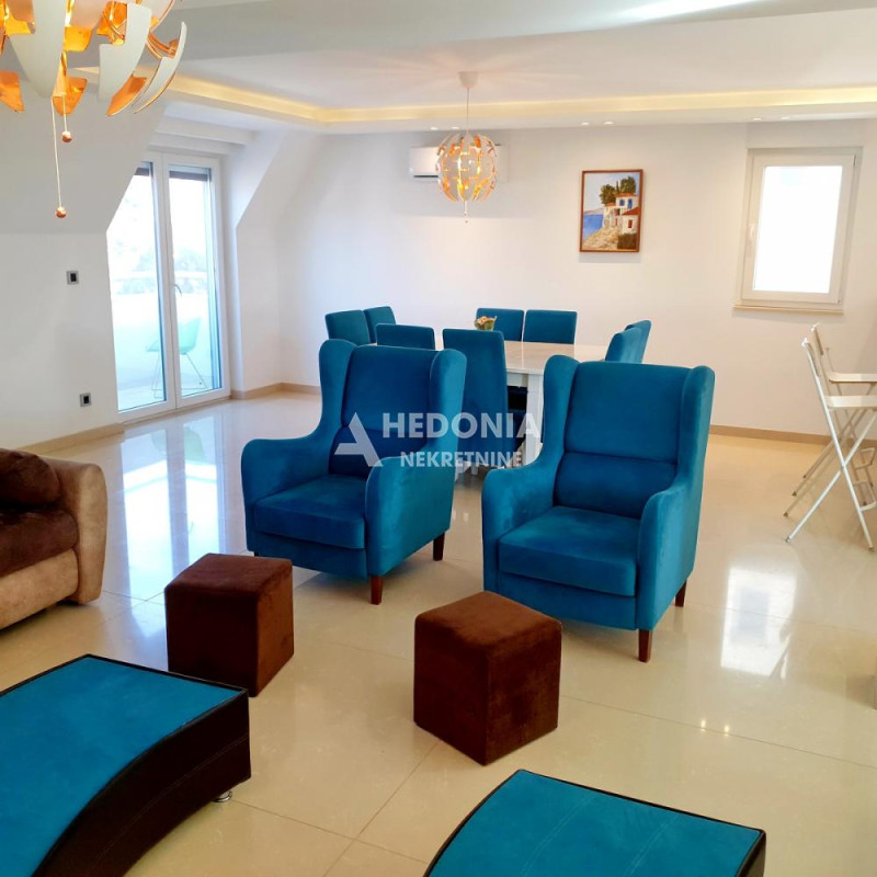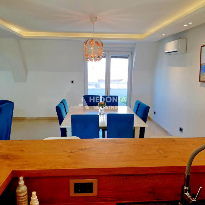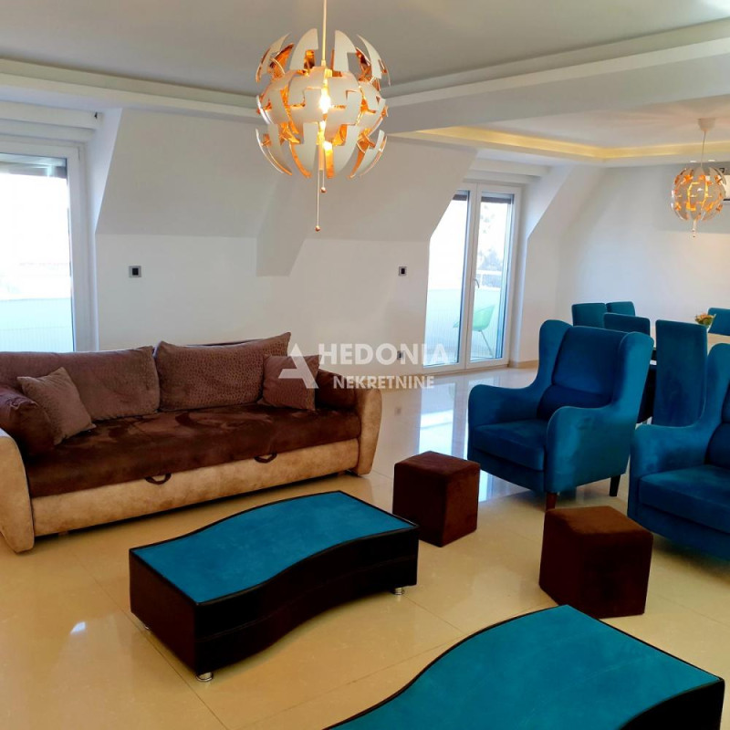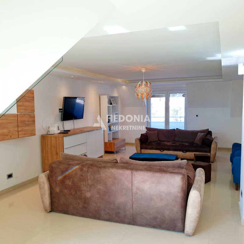 U mirnom delu naselja Lekino brdo, prodaje se ovaj nov četvorosoban stan. Smešten je na trećem spratu uredne i održavane zgrade sa liftom. U neposrednoj blizini su vrtić, škole, marketi kao i svi ostali neophodni sadržaji za udoban život. Saobraćajna povezanost sa ostalim delovima grada je odlična. Stan je penthaus, luksuzan, sa prelepim pogledom na čitav grad. Veoma je svetao i trostrano orijentisan. Poseduje mermerni pod sa podnim grejanjem na struju što pruža dodatnu udobnost za stanovanje. U stanu su i tri velike inverter klime, a kontrola grejanja, svetla i roletni je po principu pametne kuće. Sastoji se od predsoblja, dnevne sobe sa trpezarijom i kuhinjom, tri spavaće sobe, od kojih je jedna na donjem nivou, dva kupatila, na svakom nivou po jedno i tri terase. Do stana se dolazi liftom koji ide i do garaže. Stanu pripada i garažno mesto, koje je se prodaje po ceni od 30.000 EUR. Stan je uknjižen na 133m2, dok merene površine zajedno sa terasom ima 163m2.