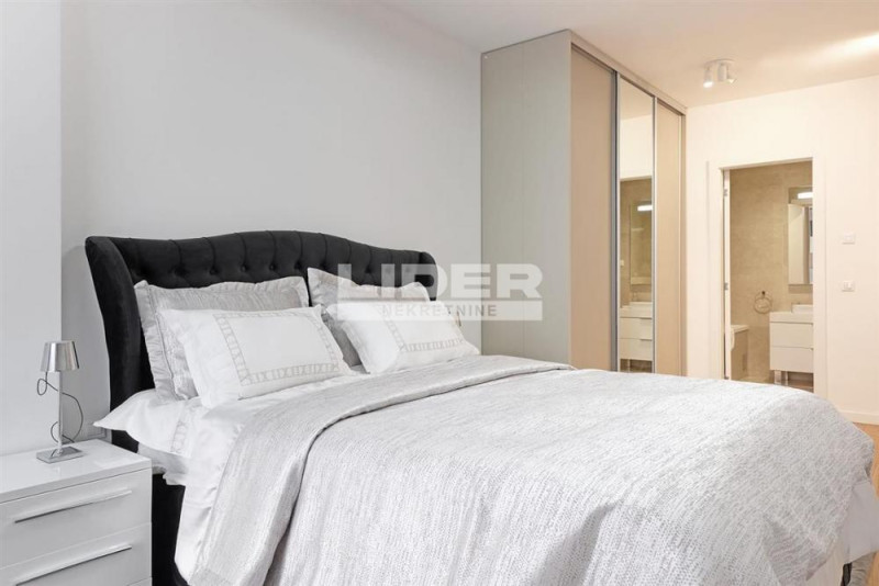 Stan je nov, luksuzno namešten i potpuno opremljen svim detaljima potrebnim za život — od posteljine, posuđa i aparata, do pegle, usisivača i drugih sitnica.