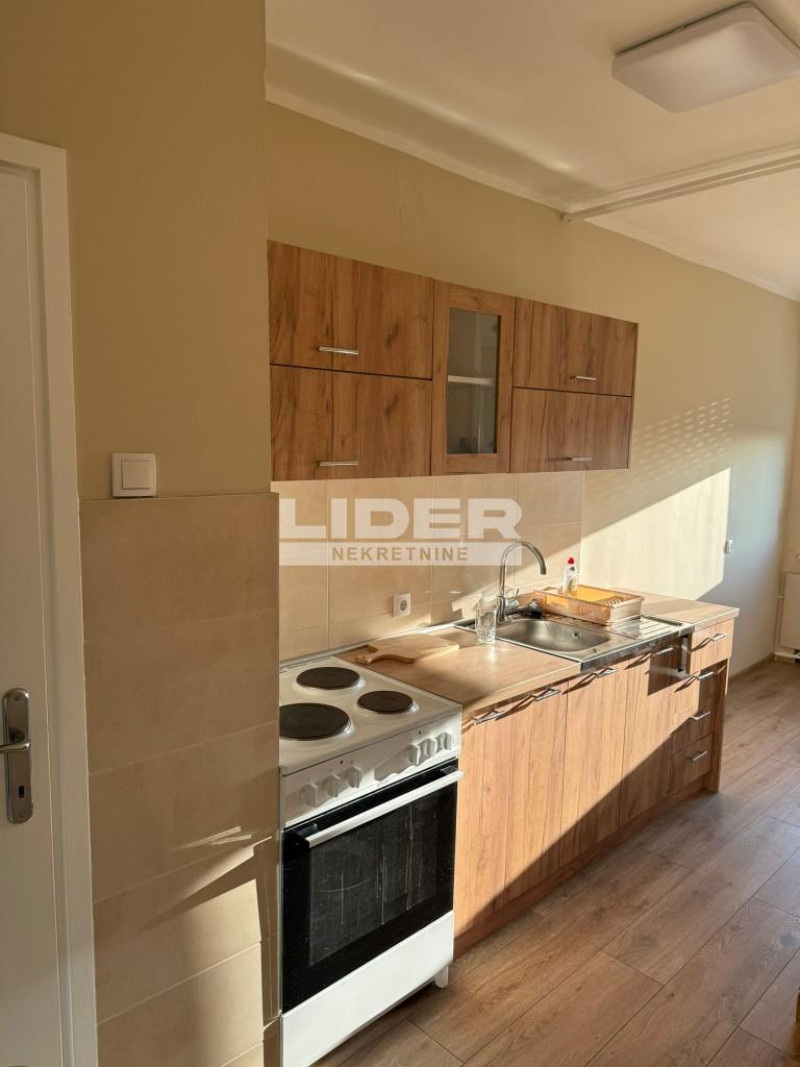 Stan je funkcionalno organizovan i sastoji se od prostranog dnevnog boravka sa lođom, spavaće sobe, kuhinje sa trpezarijom, kupatila, predsoblja i ostave. Polunamešten je: poseduje novi ugradni plakar, potpuno opremljenu kuhinju (šporet, frižider), mašinu za pranje i sušenje veša, klimu i police u ostavi. Potrebno je uneti krevet u spavaću sobu, garnituru i TV u dnevni boravak, kao i trpezarijski sto. Za ozbiljne dugoročne zakupce postoji mogućnost dodatnog opremanja nameštajem prema dogovoru.