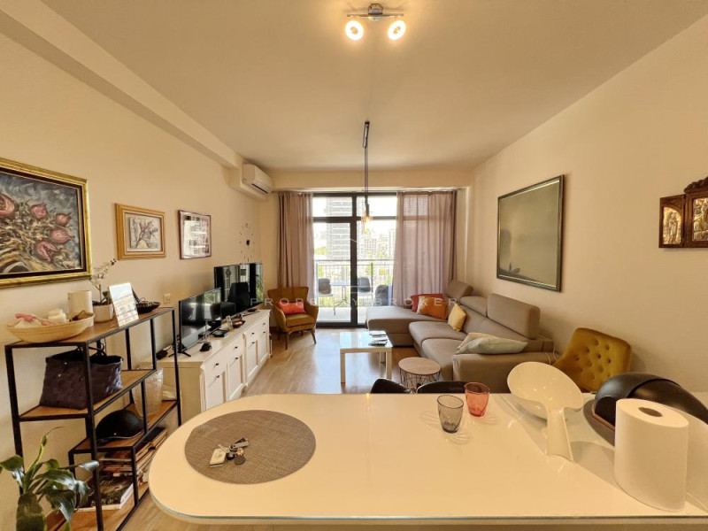 Izdajemo nov namešten stan u zgradi Arcadia, naselja Beograd na vodi. Stan se sastoji od: ulaznog hodnika, dnevno-trpezarijskog dela, sa direktim izlazom na terasu, kuhinje, ostave, spavaće sobe, kupatila. U stanu je nameštaj koji je nov, kvalitetan i moderan. Vrlo je svetao i funkcionalan. Parking mesto u garaži uračunato u cenu.