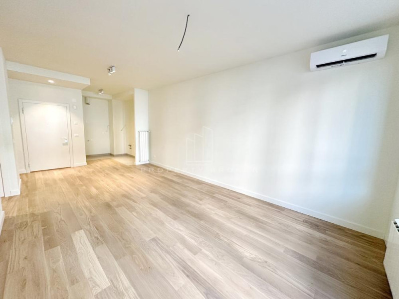 Prostran, fukcionalan stan sa pogledom na Savski park. Odličan za poslovni prostor. Zapadno orijentisan, blizina Savskog parka, Save Promenade, TC Galerije.