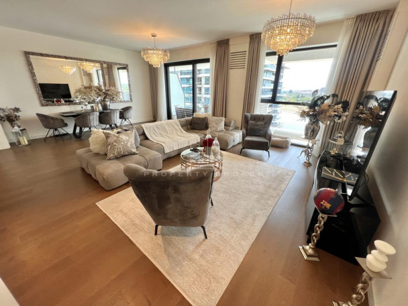 Prodajemo kompletno namešten, odmah useljiv stan u najboljoj zgradi Beograda na vodi, BW Terraces. Sastoji se od dnevnog boravka sa kuhinjom i trpezarijom koji ima izlaz na terasu, dve spavaće sobe koje izlaze na drugu terasu, dva kupatila, toaleta i vešernice.