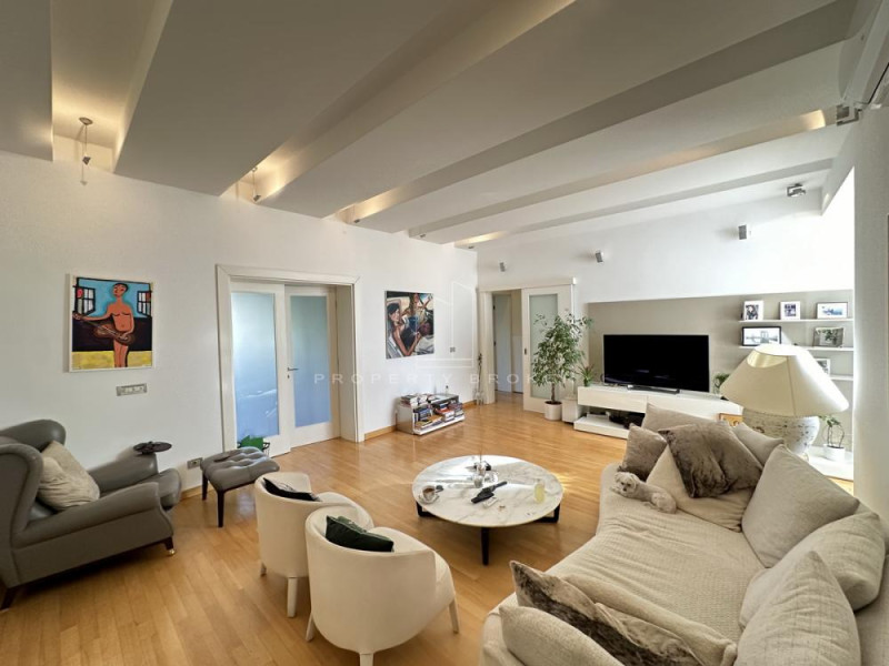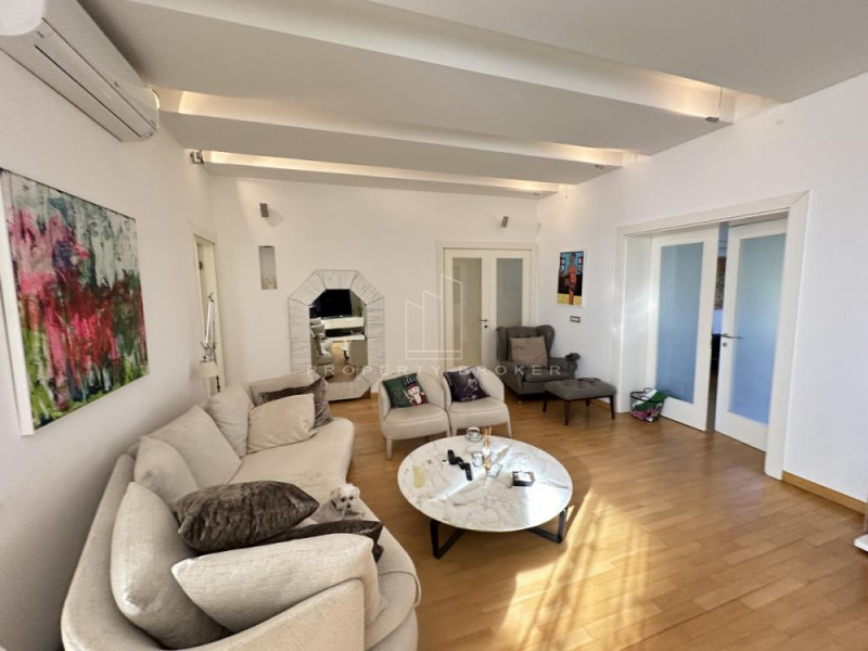 Stan se nalazi u zgradi na trećem spratu lepe zgrade i prostire se na 129 m². Sastoji se od dnevne sobe, tri prostrane spavaće sobe, jedne kompletno opremljene kuhinje, kupatila i dodatnog toaleta. Stan je u potpunosti kvalitetno renoviran, kompletno namešten i odmah useljiv.