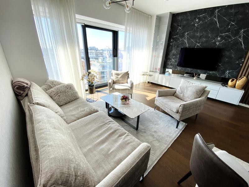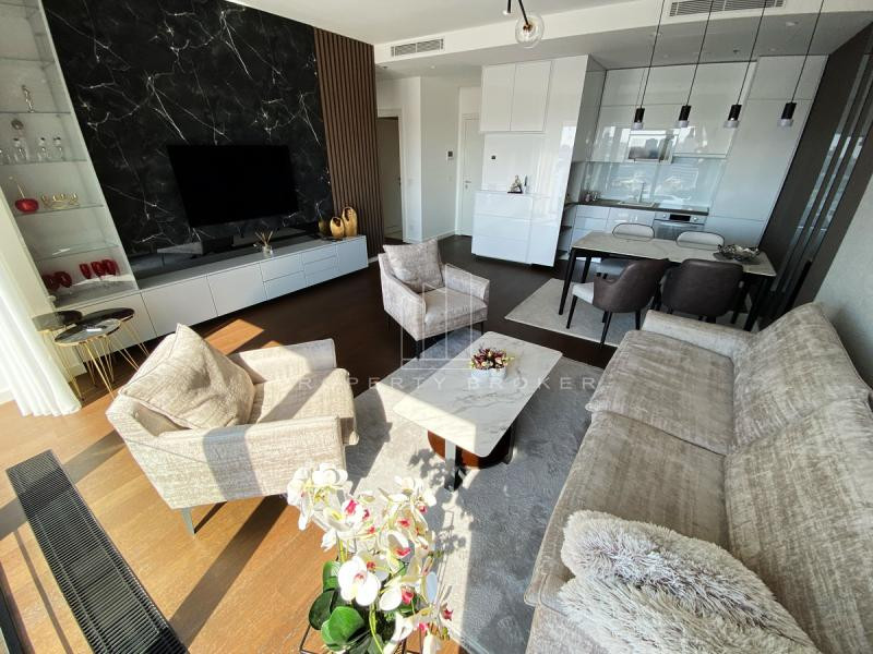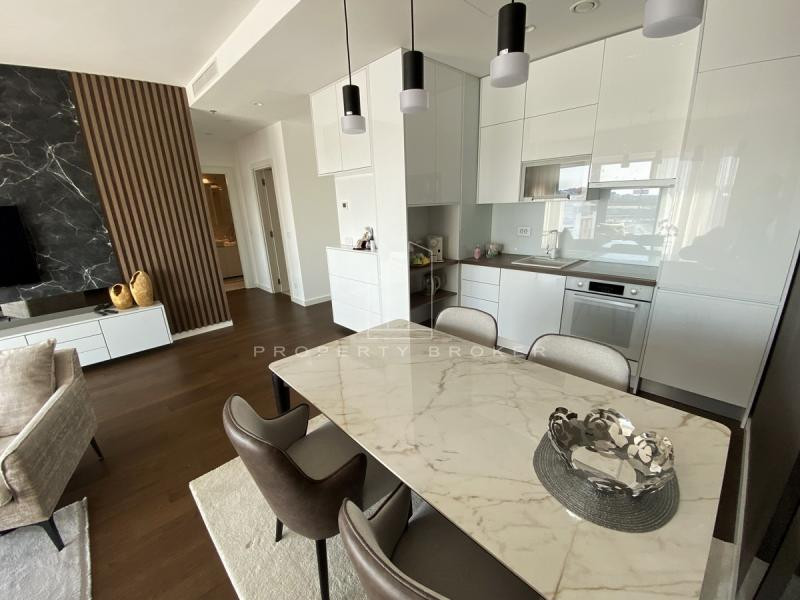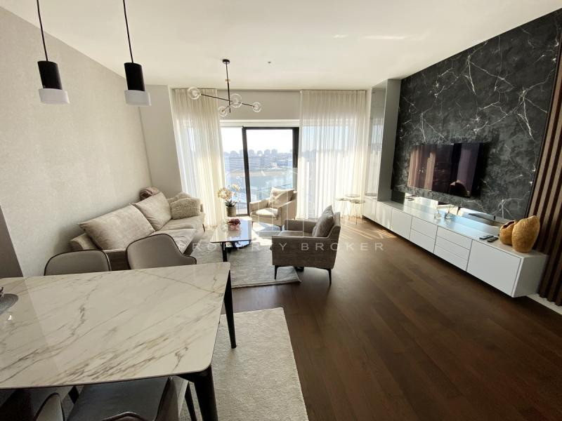 Stan je potpuno nov, nalazi se na sunčanoj strani zgrade, ima ukupno 56m2 i sastoji se od dnevnog boravka sa kuhinjom i trpezarijom otvorenog koncepta, spavaće sobe, kupatila, toaleta i vešernice. Stan je kompletno opremljen kvalitetnim nameštajem i belom tehnikom. Iz stana se pruža zadivljujući panoramski pogled na Beograd.