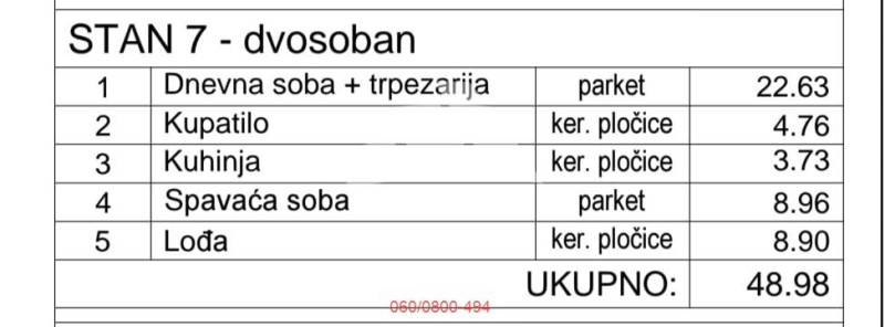 2.0, 48.98, terasa, EG, 2/4, lift, interfon, mogućnost garaže. Građevinska dozvola.
