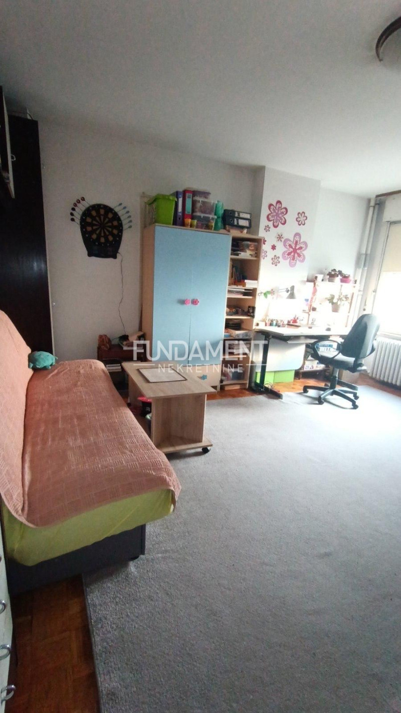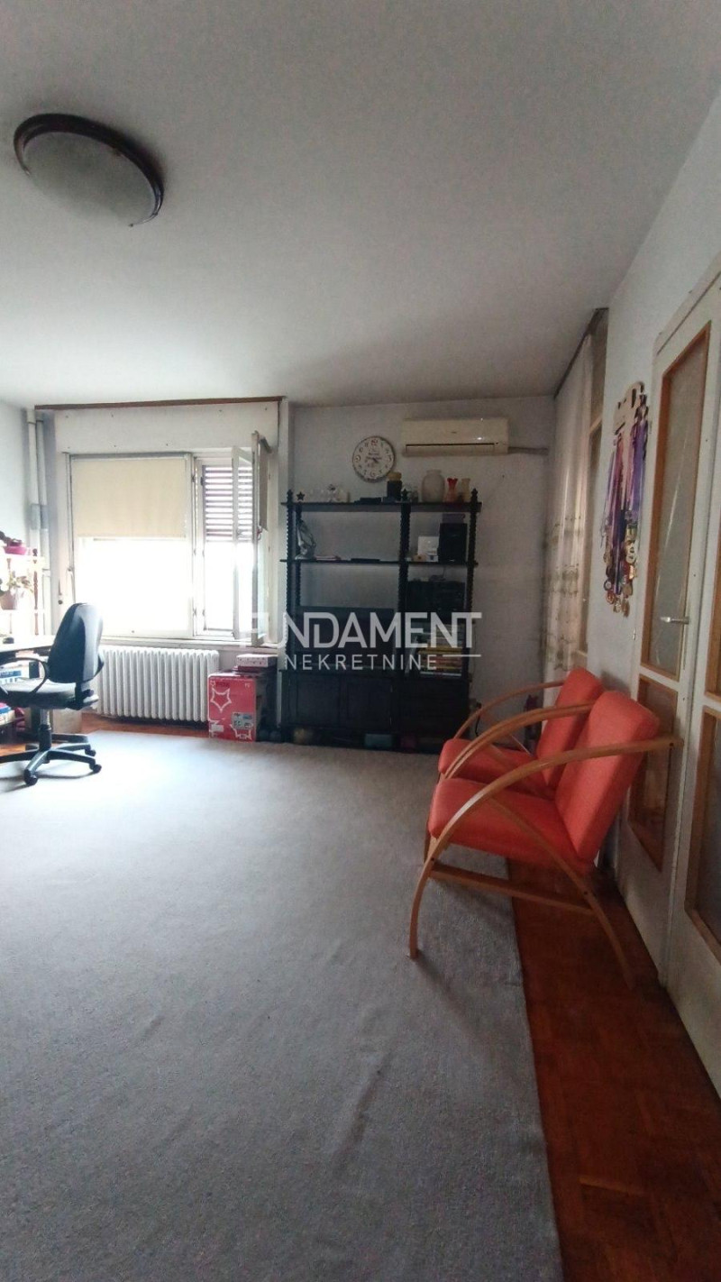 Sastoji se od: ulaznog hodnika, prostrane dnevne sobe, kuhinje sa trpezarijom, dve spavaće sobe, dva mokra čvora (manji toalet i veće kupatilo) i lodje. Stan ima i pripadajući podrum.
