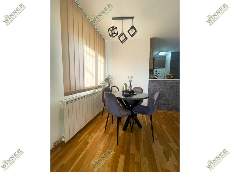 Stan se prodaje kompletno namešten kvalitetnim i estetski vrlo prijatnim nameštajem — odmah je useljiv, bez dodatnih ulaganja. Zahvaljujući dvostranoj orijentaciji, zahvaljujući velikim prozorima i toploj svetlosti, enterijer je izuzetno svetao i prijatan u toku celog dana. Stolarija je PVC tipa, obezbeđujući odličnu zvučnu i termoizolaciju. Grejanje je etažno — stan ima sopstveni električni kotao, što daje maksimalnu kontrolu nad troškovima i udobnošću.