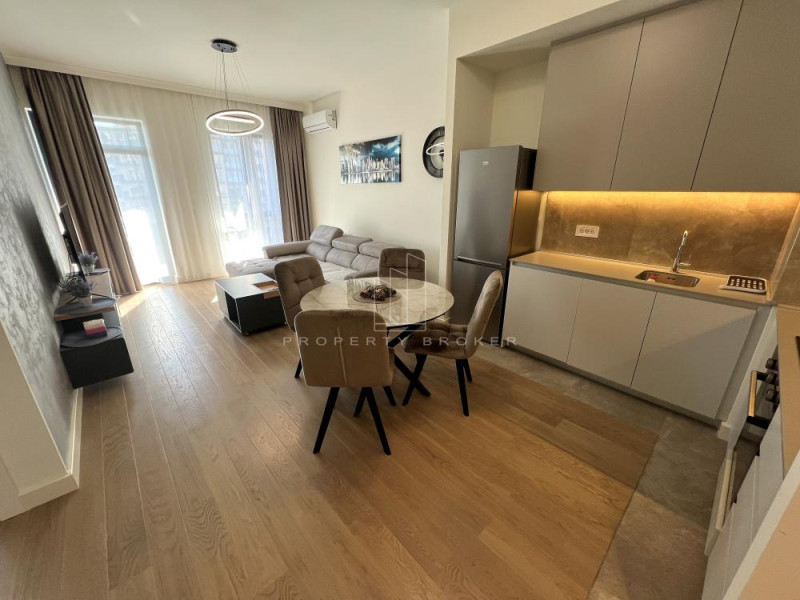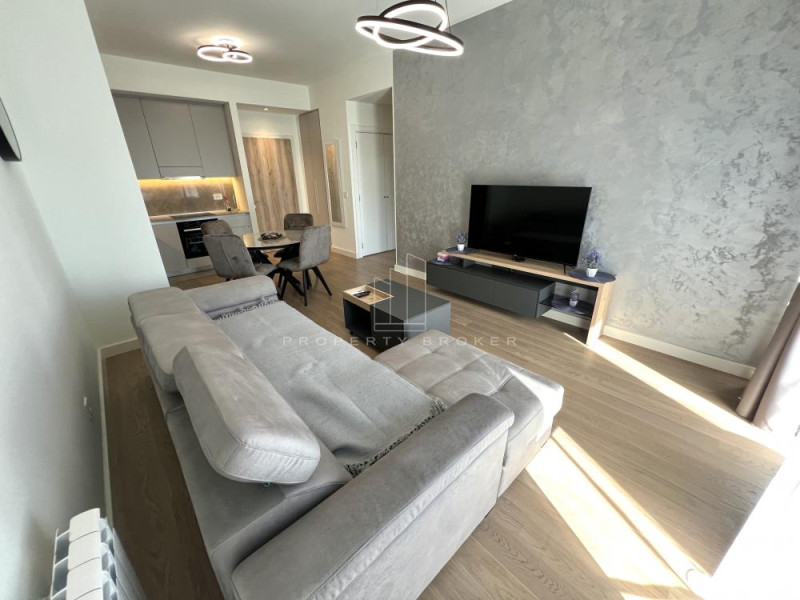 Izdaje se kompletno namešten, odmah useljiv. U oglašenu cenu stana je uračunato i pripadajuće garažno mesto u garaži objekta.