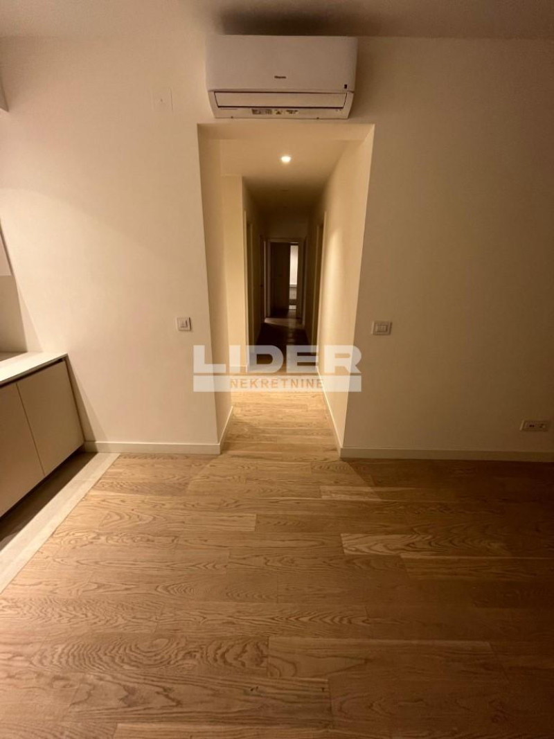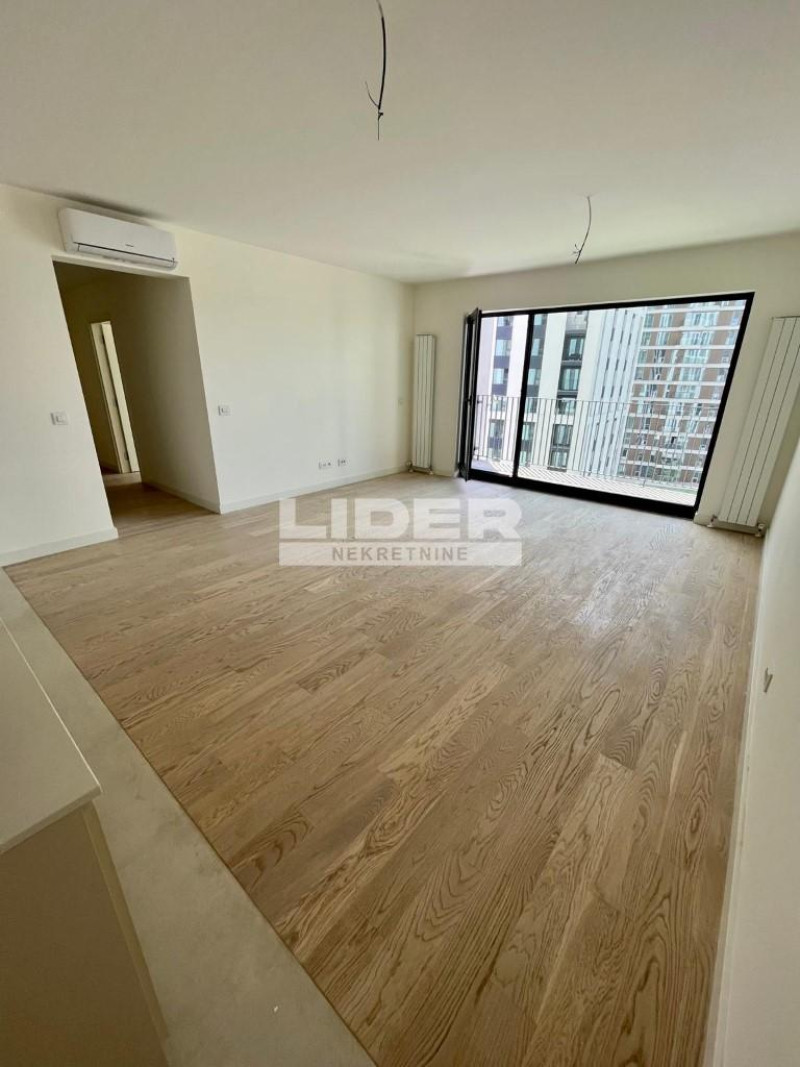 Stan se sastoji iz ulaznog dela, hodnika, kuhinje, dnevnog boravka, velike terase, 2 kupatila, 1 toaleta, vešernice i 3 odvojene sobe - spavaće sobe. 8 sprat - pogled na reku. Postoji mogućnost kupovine garažnog mesta po ceni od 35000e. Klima, lift, interfon, recepcija, video nadzor. Novogradnja. Moguća zamena za 2 bedroom - dogovor. agencijska provizija 2%