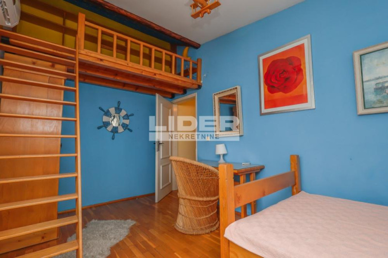 Na drugom nivou dnevna soba sa koje je pristup na prelepu terasu koja se pre može nazvati "bašta na visini", okrenuta ka Kneza Miloša,dve spavaće sobe, kupatilo.