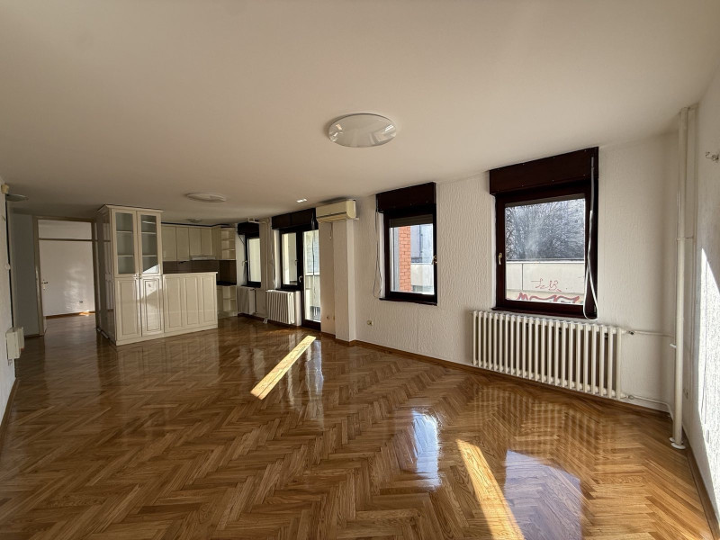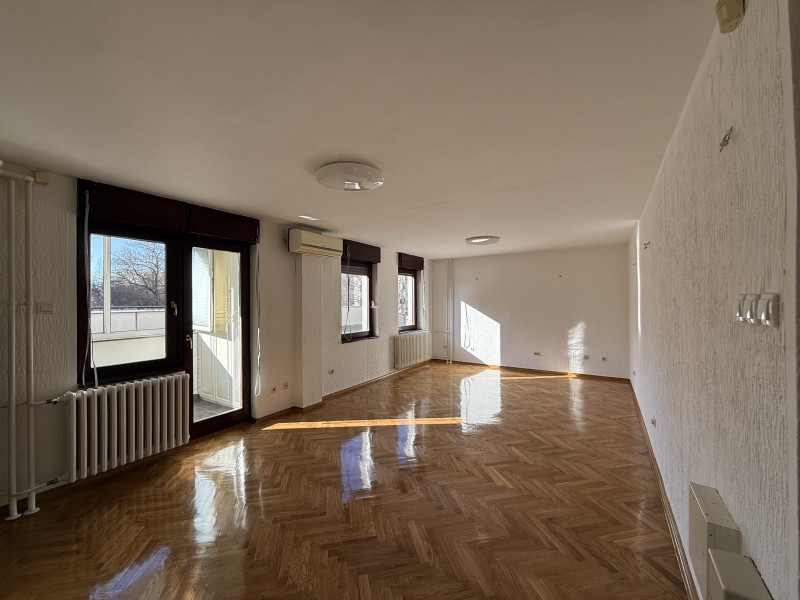 Sajma. Postoji mogućnost preuređenja stana, pregrađivanja dnevnog boravka, i može da se dobije trosoban funkcionalan