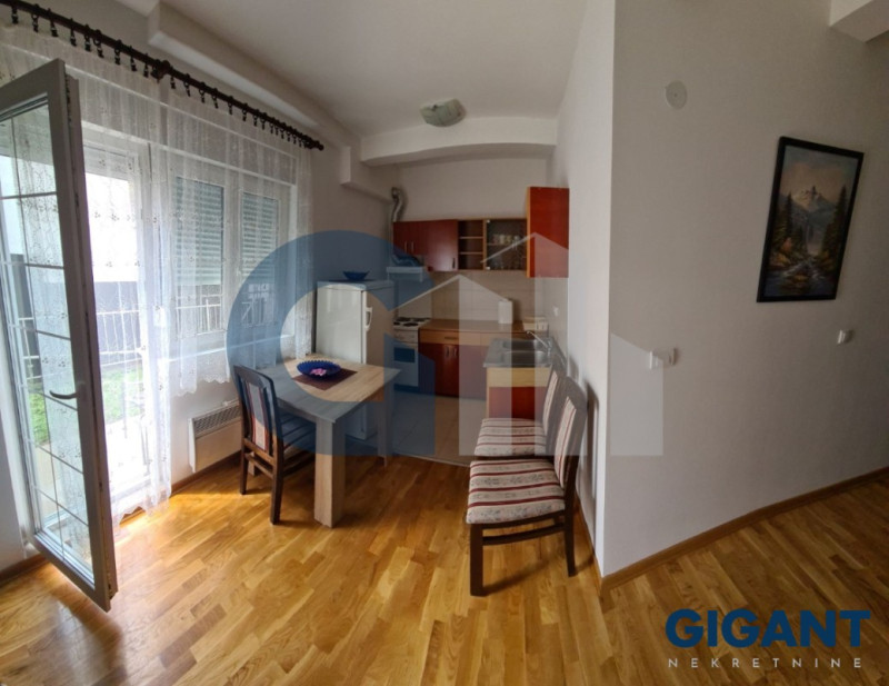 Prostorije : hodnik, dnevna soba sa trpezarijom i kuhonjom, spavaća soba, kupatilo, dve terase.