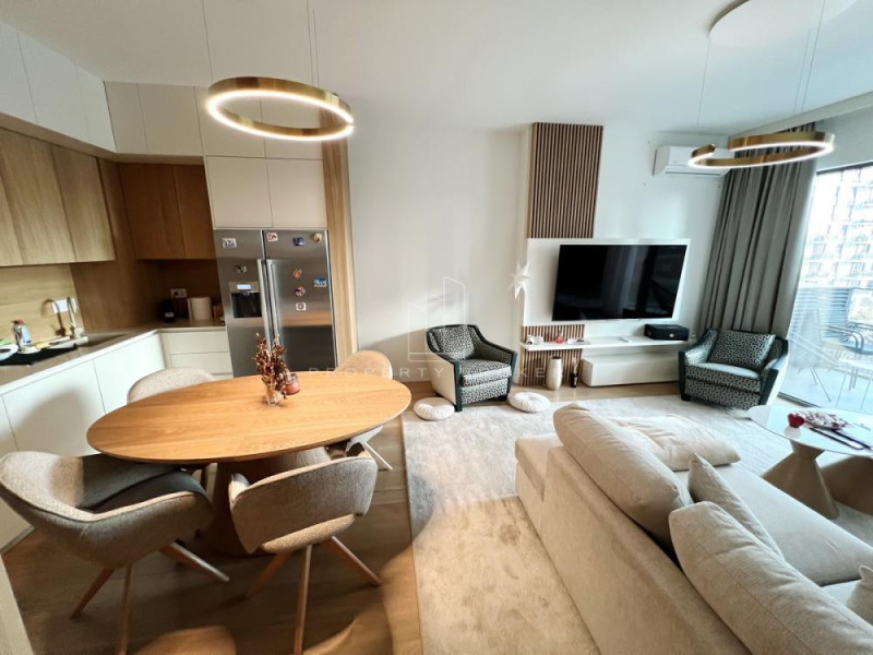 Stan se sastoji od: ulaznog hodnika, dnevne sobe koja izlazi na terasu, kuhinje sa trpezarijom, dve spavaće sobe, kupatila, master kupatila i vešernice.