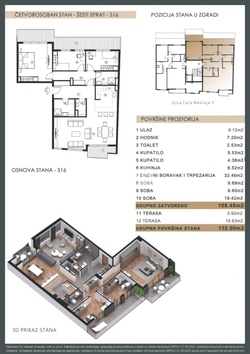 Lux novogradnja na Čuburi. Useljenje do kraja 2026. PROSTORIJE: ulaz, hodnik, toalet, 2xkupatilo, kuhinja, dnevna soba sa trpezarijom, 3 spavaće sobe + 2 terase. agencijska provizija 2%
