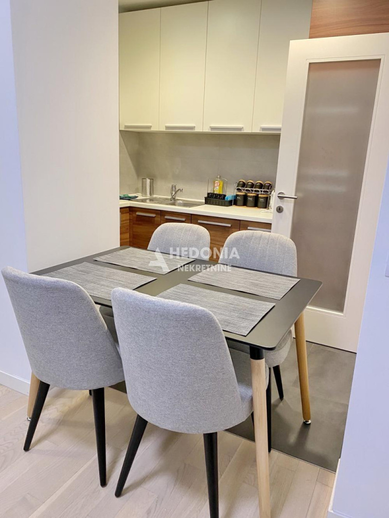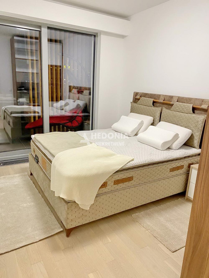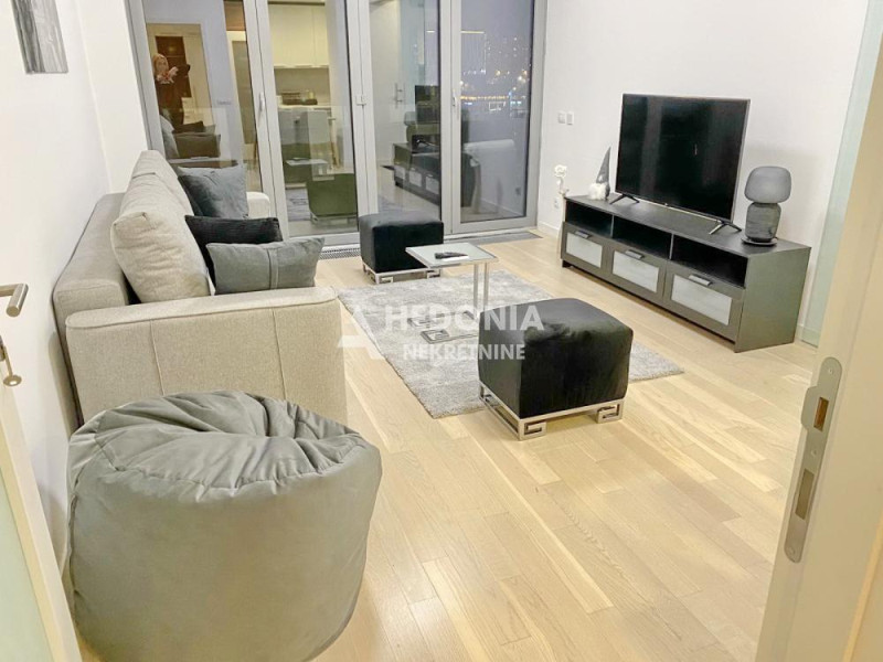 U prestižnom naselju na Novom Beogradu, stambeno - poslovnom kompleksu West 65, koji je izvanredan primer spoja savremene umetnosti i arhitekture, nalazi se ovaj dvosoban stan za izdavanje. Impresivna izgradnja je učinila da ovaj deo grada postane simbol uspešnosti i kreativnosti. U West-u 65 se, osim modernih, po najsavremenijoj tehnologiji građenih zgrada, vodilo računa i o pejzažnom uređenju. U centru kompleksa nalazi se prelepo osvetljena fontana, pa ćete se osećati kao na moru. Uz veseli žamor ljudi iz okolnih kafića i restorana, učiniće da se osećate zdravo i raspoloženo. Deca, stariji sugrađani kao i kućni ljubimci su zaštićeni i sigurni u ovom kompleksu koji je sinonim za oazu mira, udobnog života i sveukupne lepote. Kompleks ima dvadesetčetvoročasovno fizičko i video obezbeđenje. Stan je noviji, luksuzan i namešten. Sastoji se iz ulaznog hodnika, dnevno kuhinjsko trpezarijskog dela, spavaće sobe i terase. Obavezan depozit prema zakupodavcu u visini rente + 50% provizija agencije za usluge posredovanja.