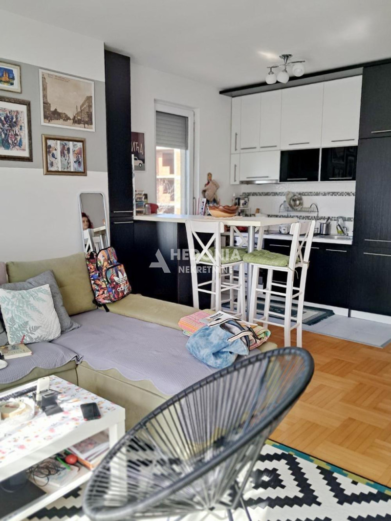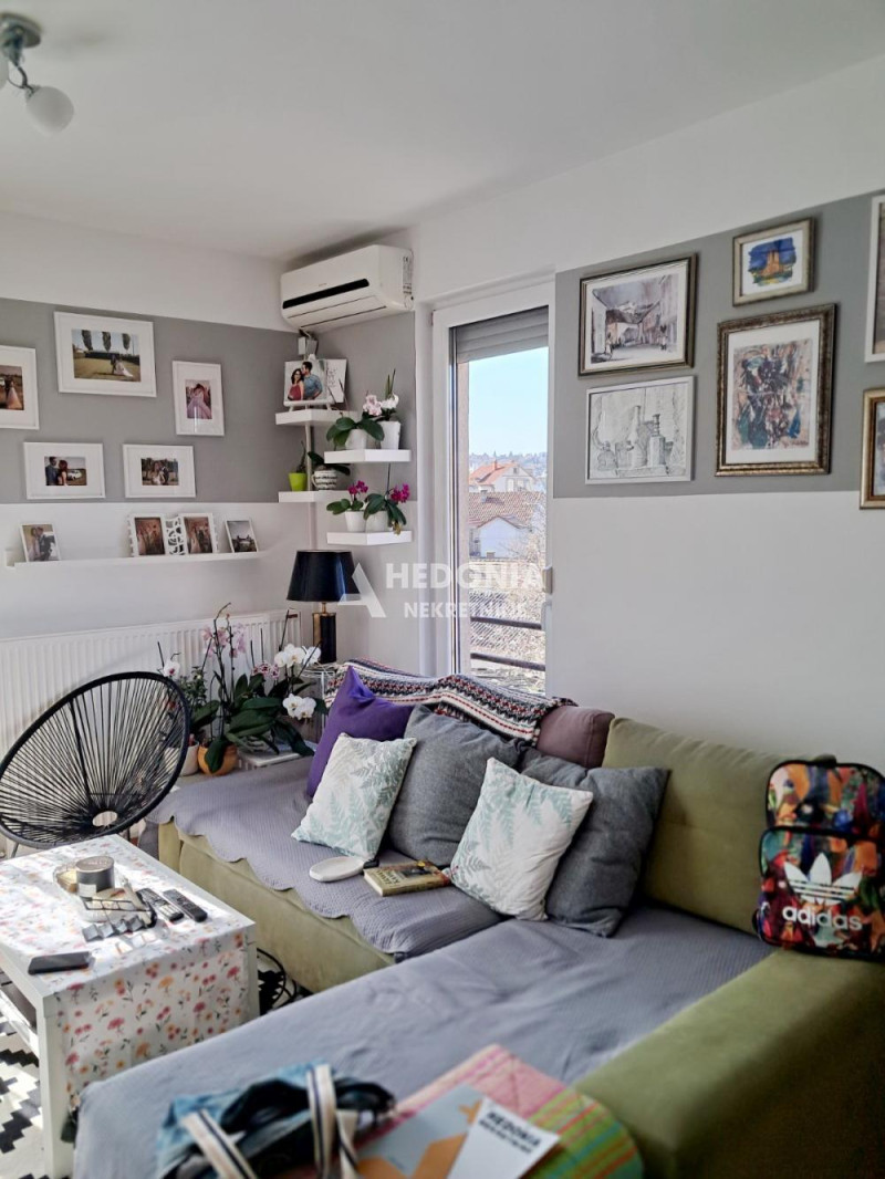 Dovoljno daleko od gradske vreve i smoga, bez problema sa parkiranjem, na samo dvadeset minuta vožnje udaljeno od strogog centra grada, nalazi se ovaj dvosoban stan. Smešten je u novijoj, održavanoj i urednoj zgradi, u mirnom i tihom delu naselja, okruženim zelenilom. Infrastruktura je kompletna, u blizini se nalazi škola, Dom zdravlja, pijaca kao i svi ostali neophodni sadržaji za udoban život. Saobraćajna povezanost sa ostalim delovima grada je odlična. Stan ambijentalan, uređen tako da ističe lepotu, harmoniju i eleganciju sa lepim slikama i detaljima. Stvari su očuvane. Od prostorija ima predsoblje sa plakarima, kupatilo sa prirodnom ventilacijom, spavaću sobu, dnevni boravak sa izlazom na terasu, kuhinju i trpezariju. Stan se prodaje kompletno namešten i opremljen. Slobodan parking u dvorištu zgrade. U cenu stana je uračunata i agencijska provizija.