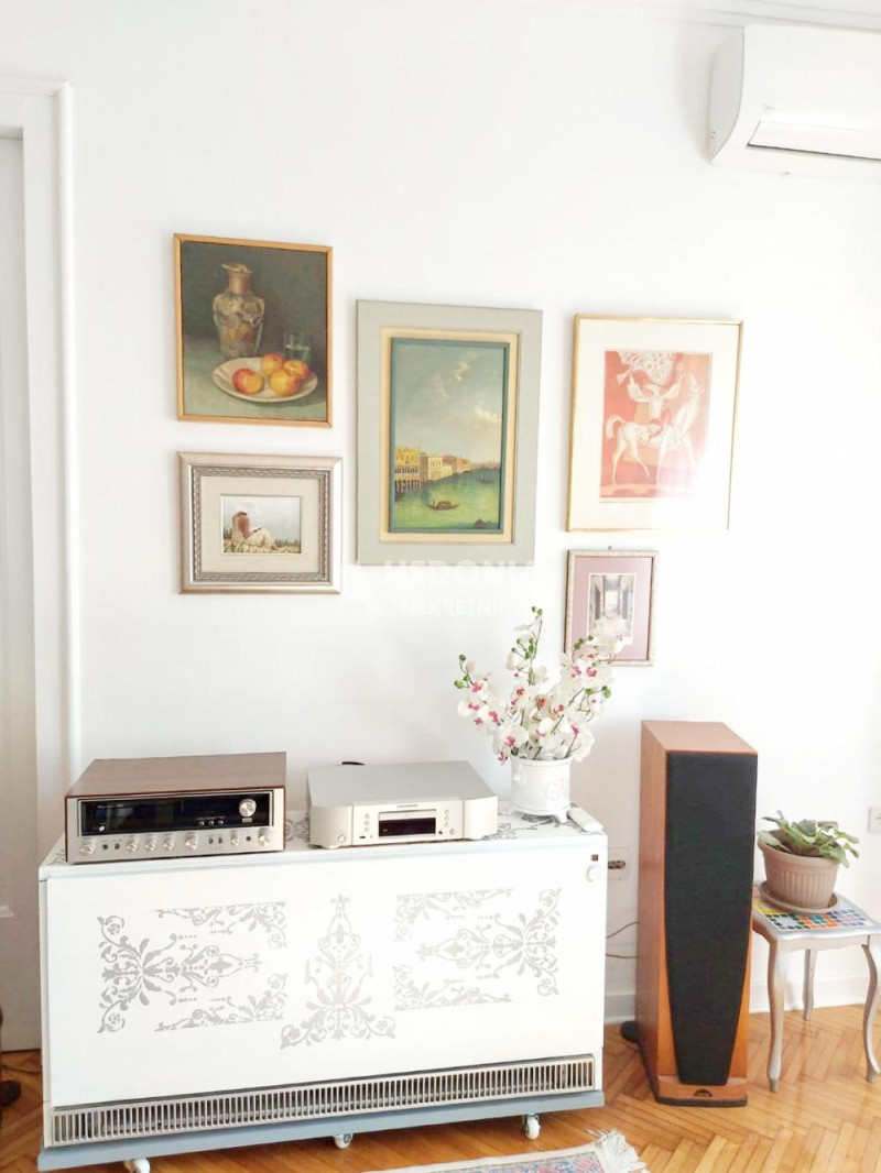 Autentičan, trosoban stan koji se nalazi na prestižnoj lokaciji gradske opštine Stari grad u Kolarčevoj ulici, neposredno uz Knez Mihailovu, na par minuta hoda do Kalemegdana, a sa druge strane Terazija i drugih najpoznatijih atraktivnih mesta. Blizina ovih atraktivnih mesta, ovu lokaciju čine jednom od najtraženijih pa infrastrukturu i saobraćajnu mrežu ne treba ni naglašavati. Smešten je u salonskoj zgradi sa liftom, koja je uredna i održavana. Stan odiše posebnom pozitivnom energijom tako da je samo potrebno da novi zakupac ovom prelepom stanu podari svoj lični pečat. Sastoji se od dve spavaće sobe, dnevnog boravka, odvojene kuhinje, kupatila i dva francuska balkona. Kompletno je namešten i opremljen. Useljiv. Dozvoljeni su kućni ljubimci. Obavezan depozit prema zakupodavcu u visini rente + 50% provizija agencije za usluge posredovanja.